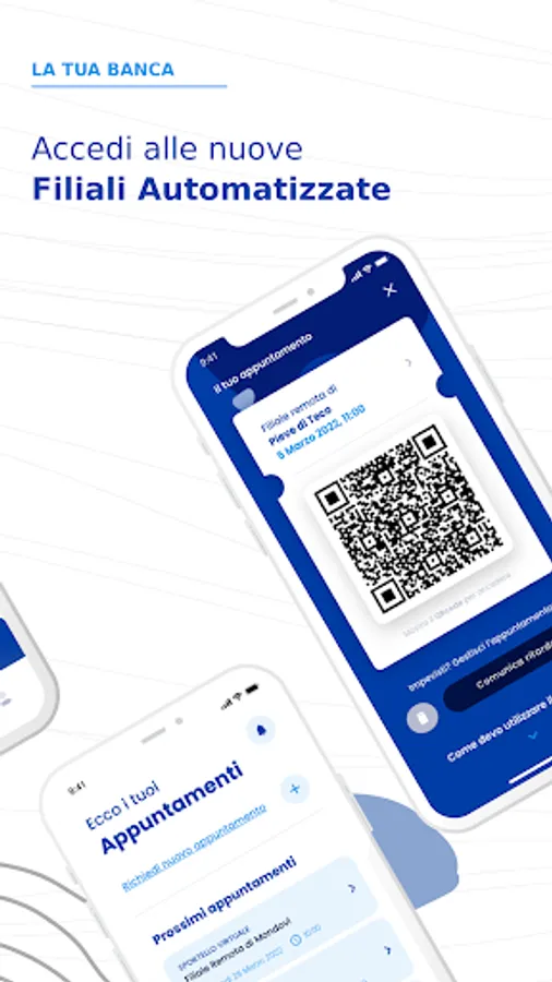 Use the app to access our remote branches with a QRCode. In these highly automated places you will be able to carry out the main banking operations with the support of our staff connected remotely. All you have to do is explain your need!