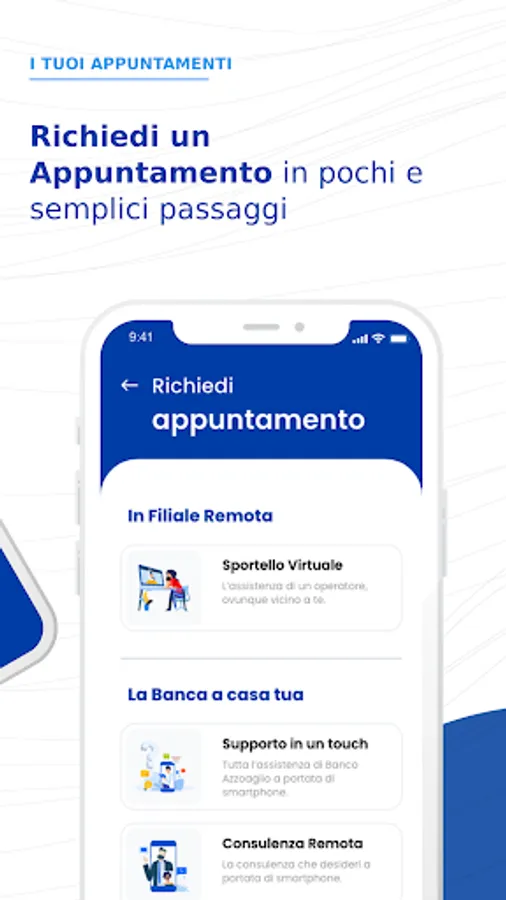 Experience BANCO AZZOAGLIO at 360 degrees. Book a consultation in the branch (at our new remote branches) or from the comfort of your sofa. Our people will be available to listen to your requests.