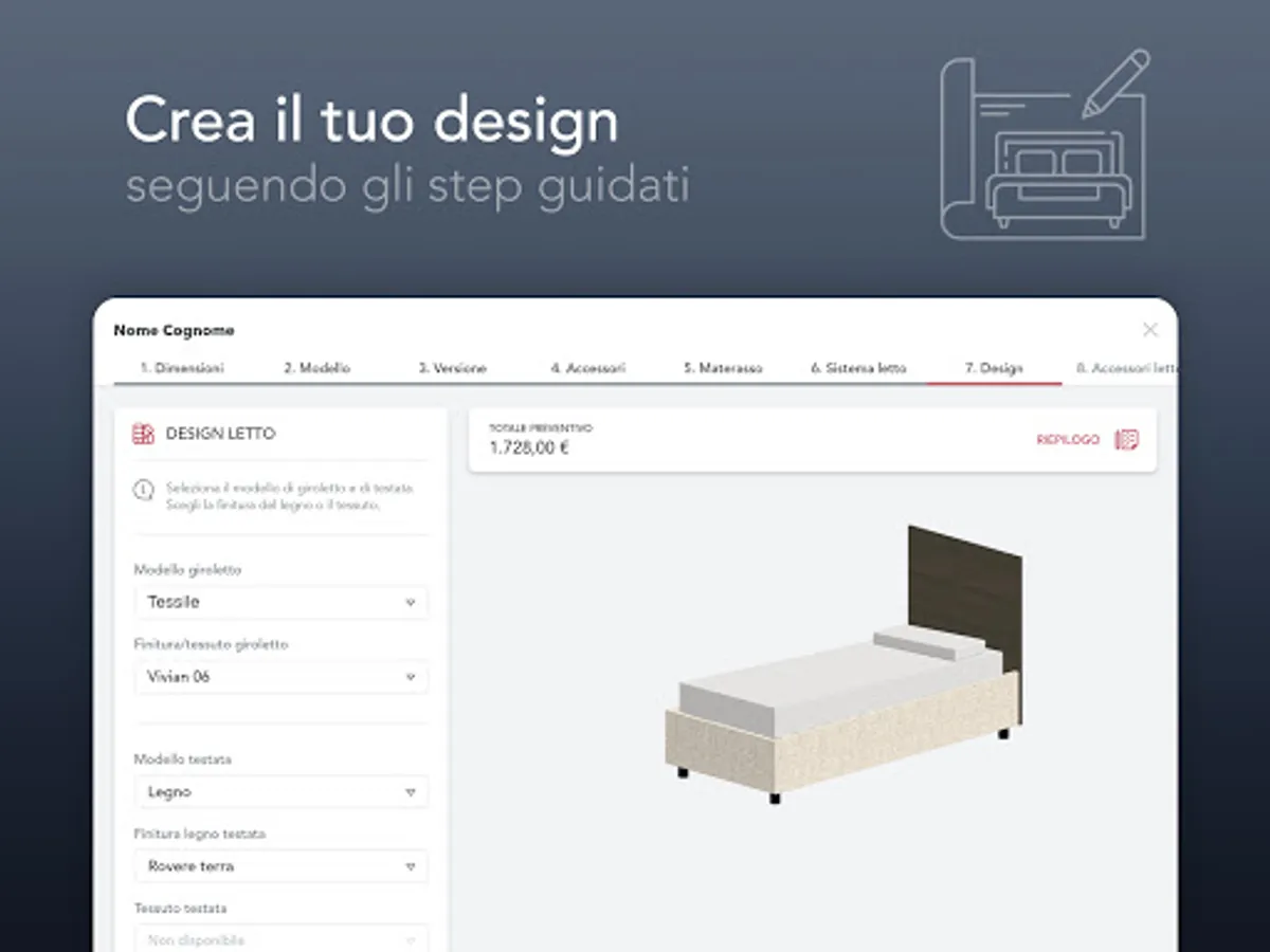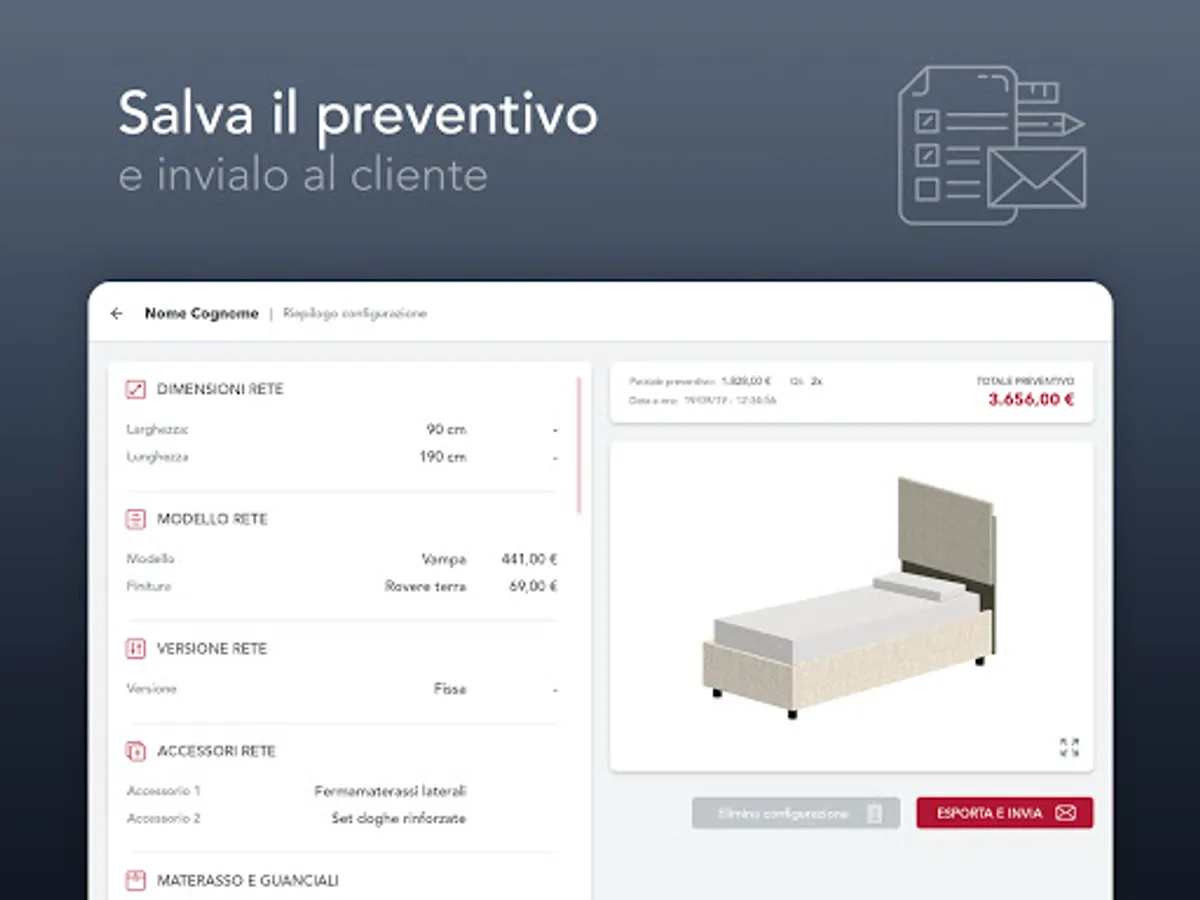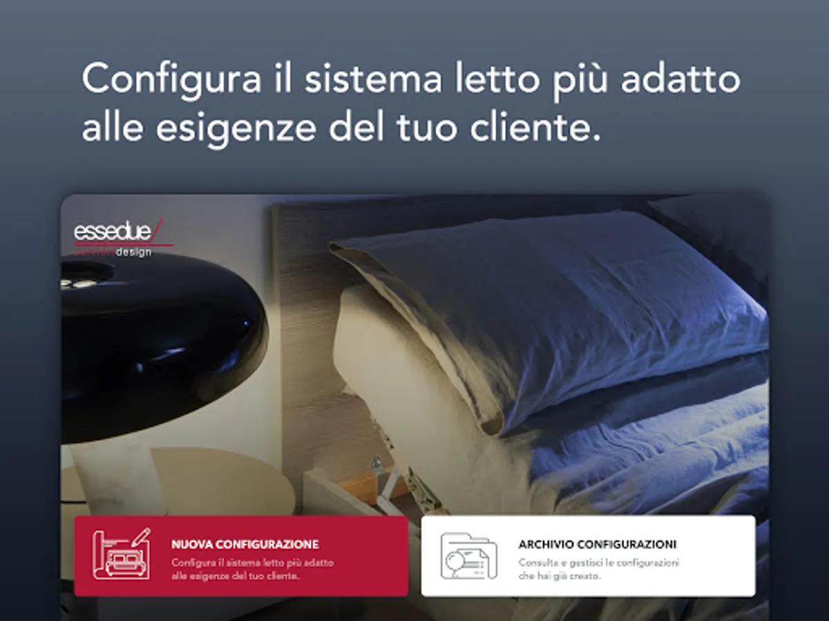 The Essedue Bed Configurator application is a sales support tool for Essedue operators.
