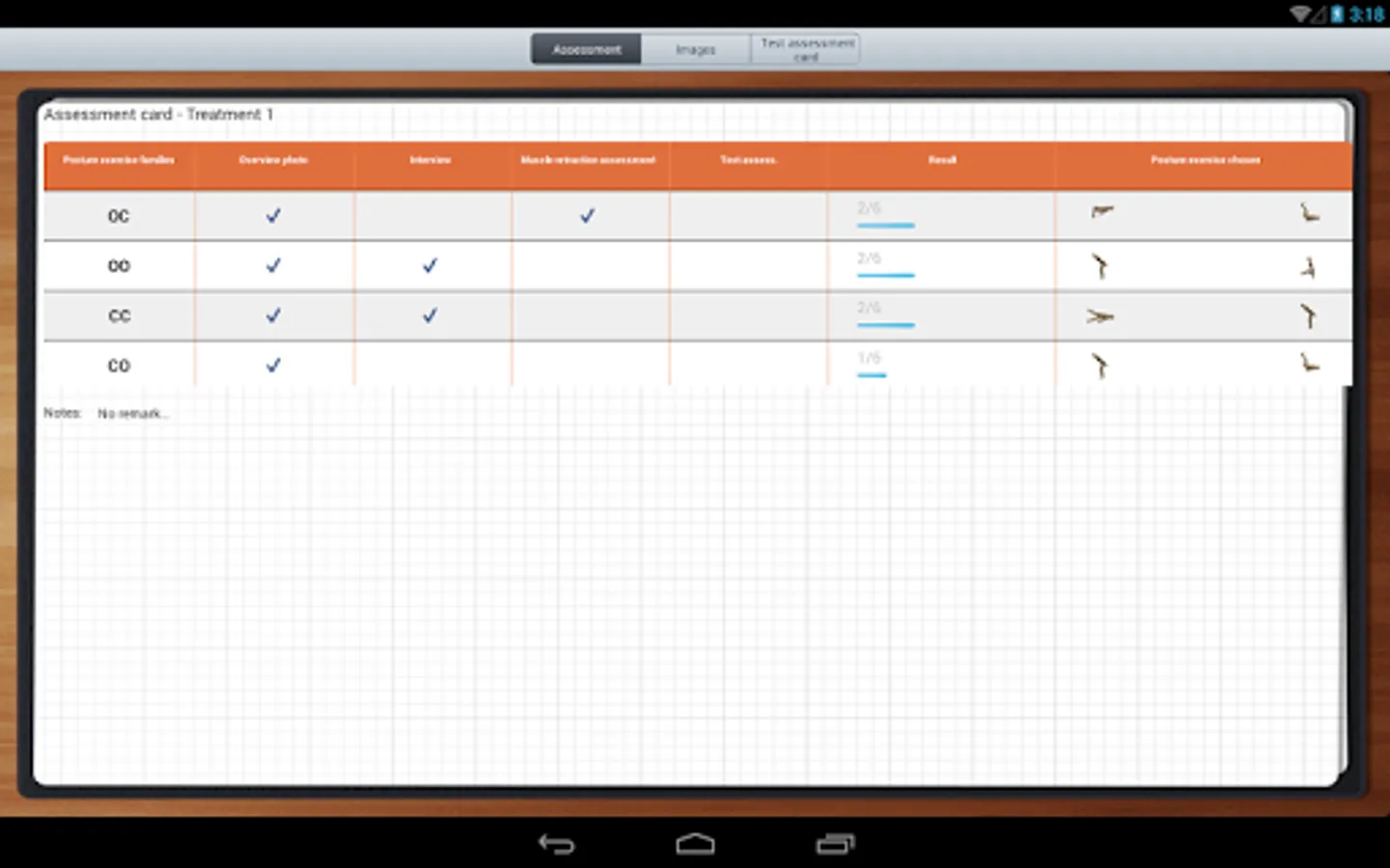 - For each session there is the scoreboard of the RPG and / or scoreboard of scoliosis, Table 6 zones, Table neck and shoulders Table