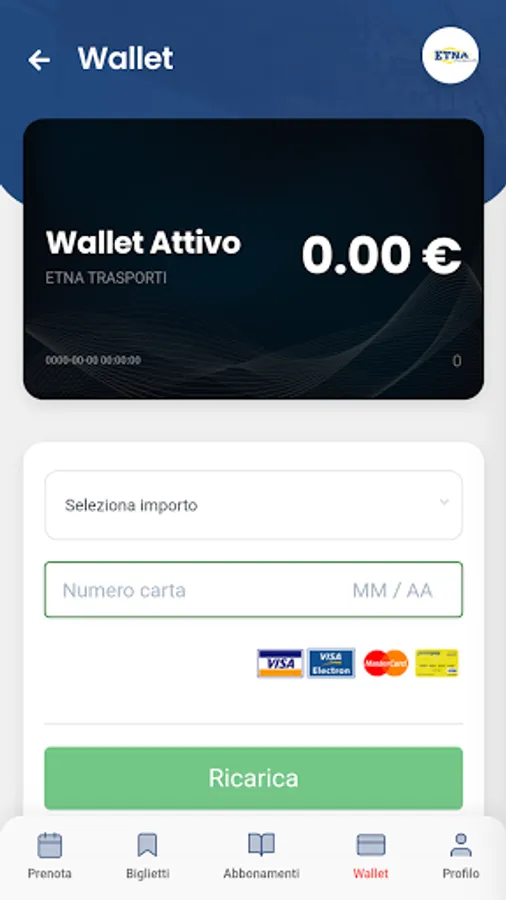 2. Associate the Etna Trasporti pass card and you will be able to purchase and modify your pass.