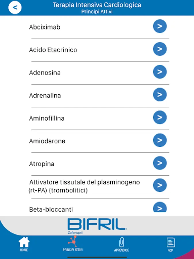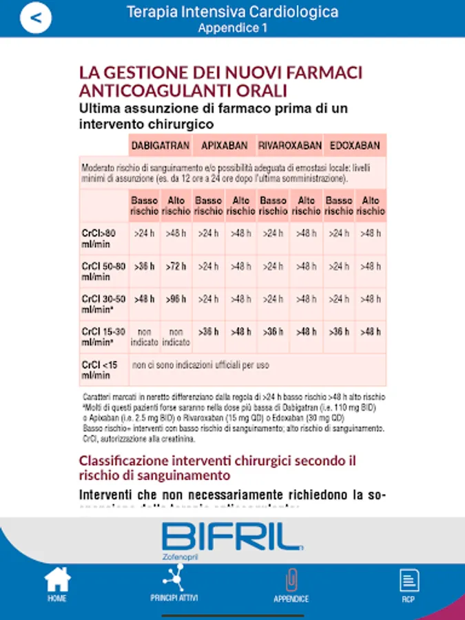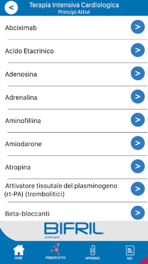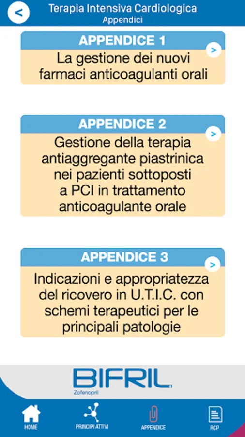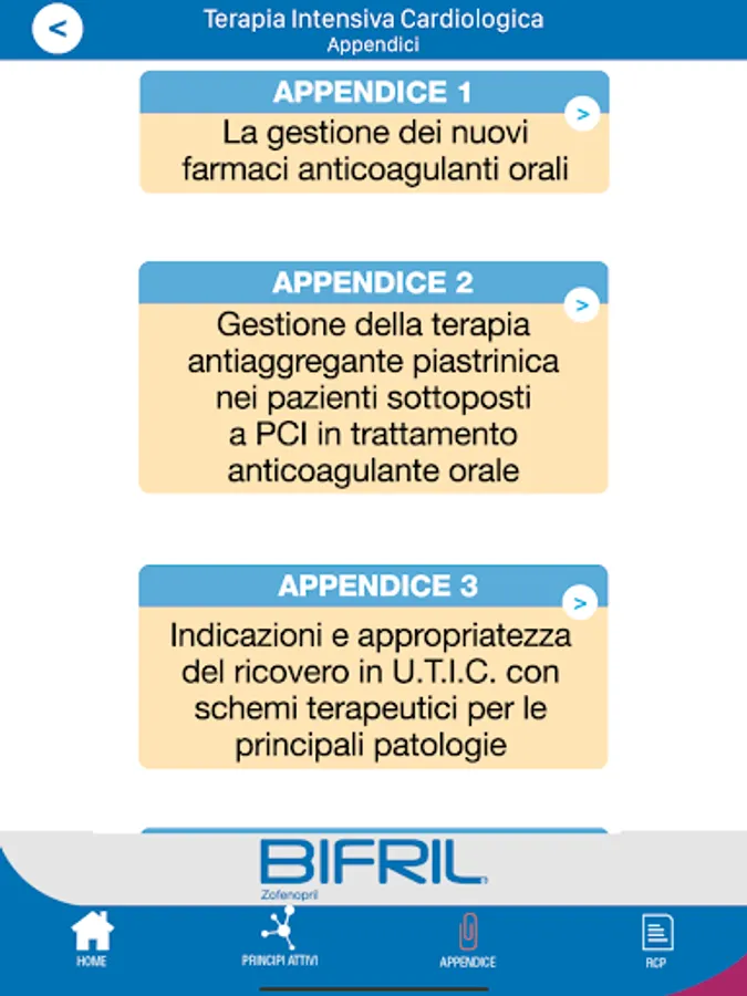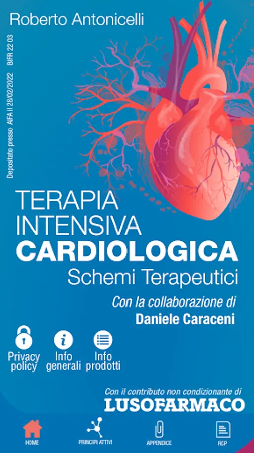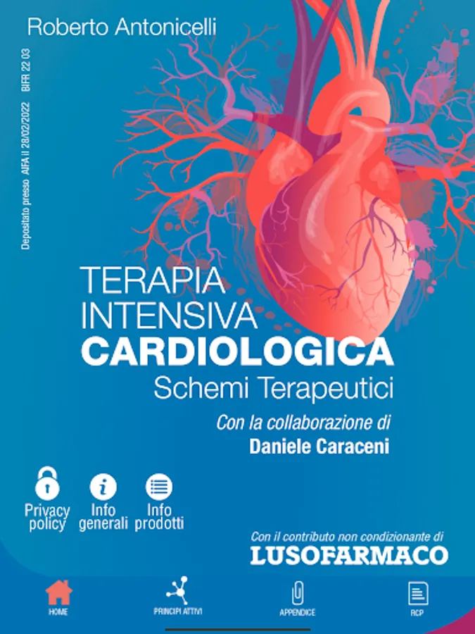The APP "Cardiological Intensive Therapy - Therapeutic Schemes" is proposed as a useful support in professional practice for the cardiologist engaged in specialized intensive care, as his consultation offers a synoptic view of the active ingredients and above all of the detailed therapeutic protocols and schemes of feedback and frequent use in UTIC. By choosing selected input data, the APP allows a quick guide output to choose the drug, protocol and therapeutic scheme suitable for the specific indication; this without prejudice to the need to further deepen the evaluation by the Doctor, the only figure who is responsible for the interpretation of clinical data.