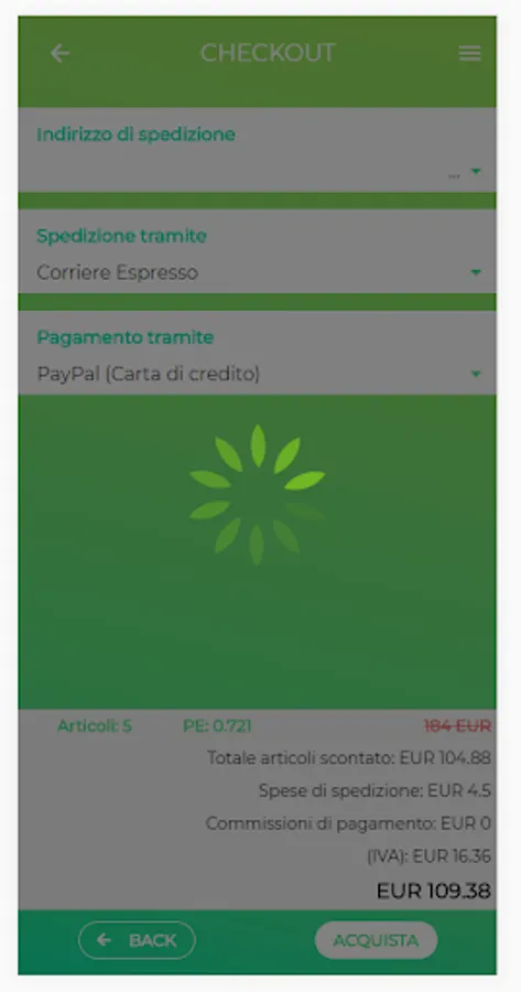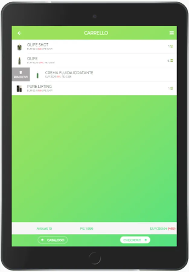 - Cart: easy and fast cart, able to memorize the inserted items even if you exit the application. Upon completion of the order you will be directed to the order history where you will find your order ready for payment.