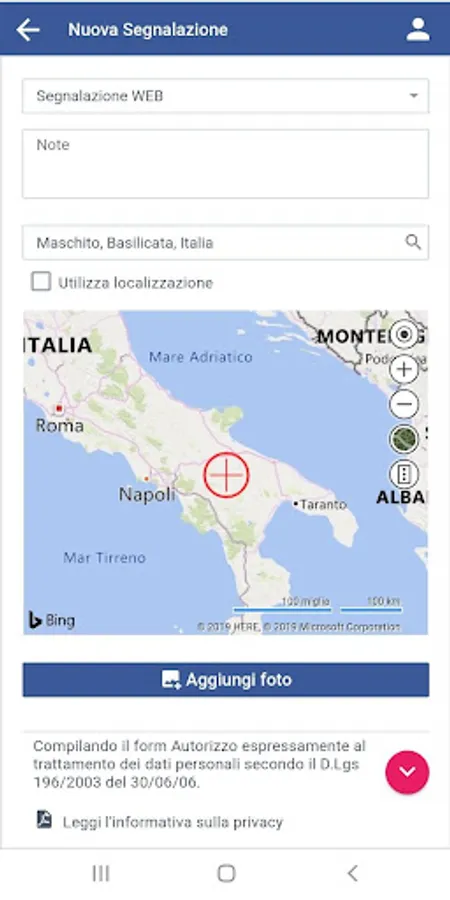 App of the Basilicata Reclamation Consortium (CBBAS) designed for all citizens to send direct reports to the Consortium from the territory