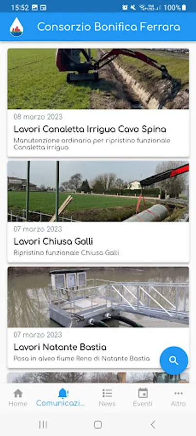 An app designed to offer a real-time service: weather forecasts, rain gauges, contacts for reporting emergencies, temporary service interruptions for works, useful forms.