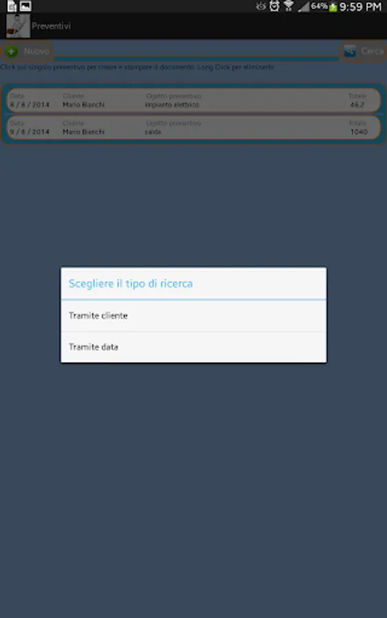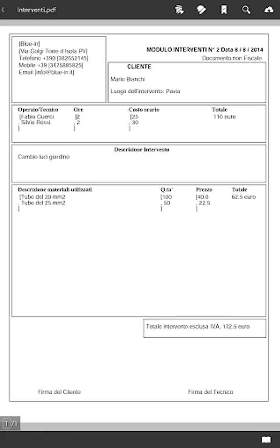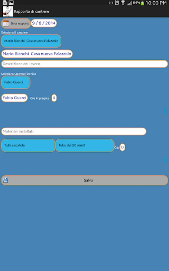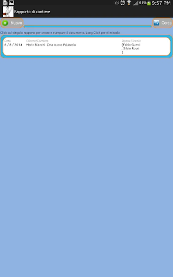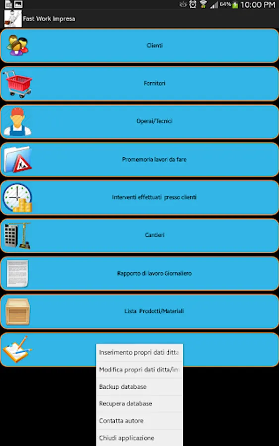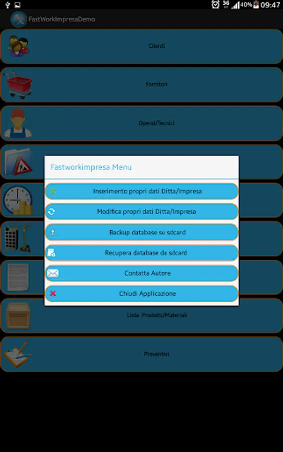This application is a portable office to simplify and speed up the daily activities typical of the category artgianale (electricians, plumbers, carpenters, computer technicians, etc.).