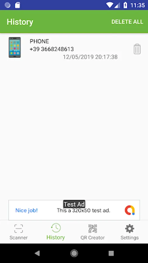 There is a History, in which information about the scans performed is collected. The history consists of a list containing the scanned codes. Each history line consists of: