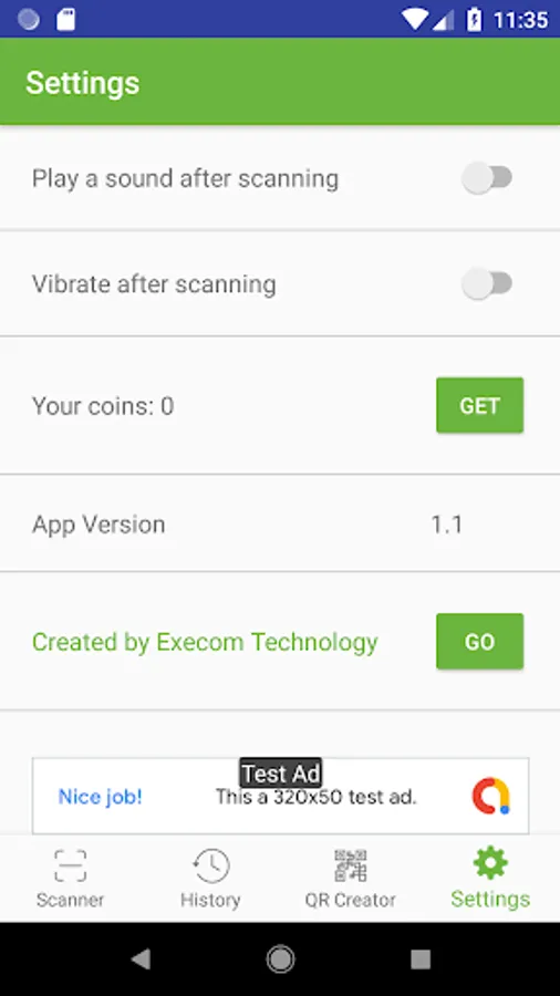 Finally, in the Settings settings screen, there are the options to be performed at the end of each scan (beep or vibration).