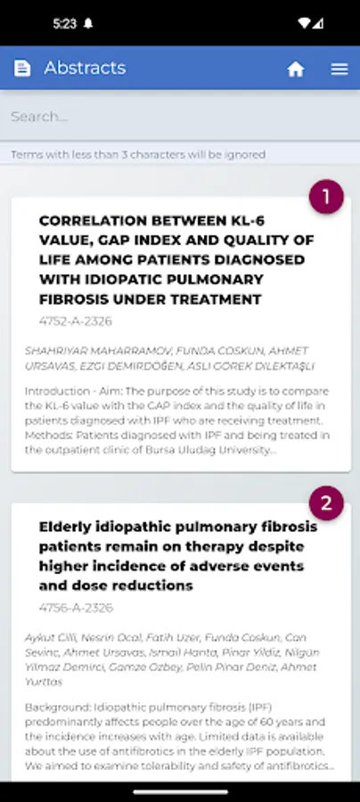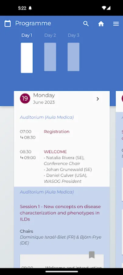 Through the app you will have easy access to all the conference info such as updated programme, congress venue, place maps, abstracts previews. You can search for sessions, authors, abstracts by keywords and add bookmarks to the sessions of your interest.