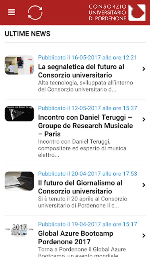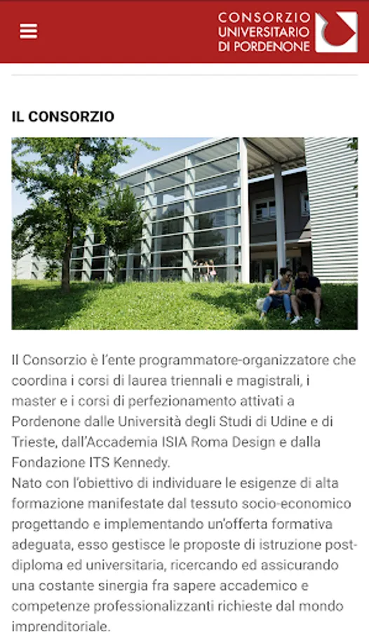 With this APP we want to provide the opportunity for everyone to stay informed (even with push notifications if required) on the activities and events that take place within the University Consortium of Pordenone or involving activities managed by the University Campus. You can also refer to the information on the structure, the services we offer in the Territory and Companies. If necessary, you can also contact us quickly!