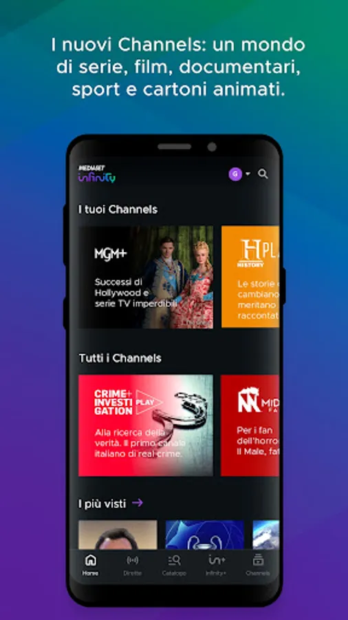 – With the new Channels you can access content from MGM+, History Play, Crime+Investigation Play, Midnight Factory and Juventus TV