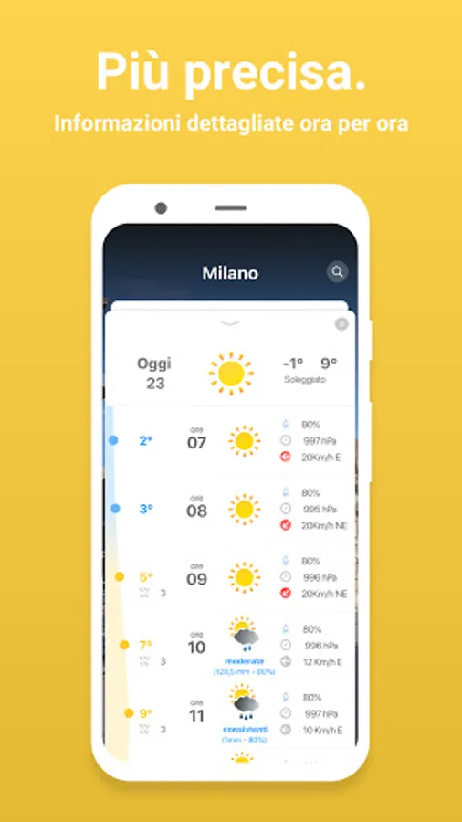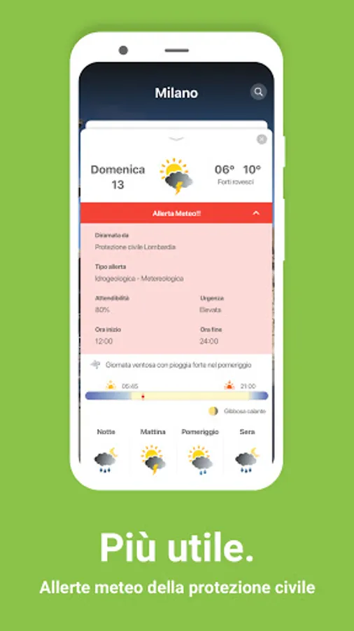 Meteo.it, the app with accurate and reliable weather forecasts thanks to our innovative forecasting algorithms. Download the Meteo.it app for free and set the weather for your favorite locations, you can choose from over 20,000 locations in Italy and around the world.