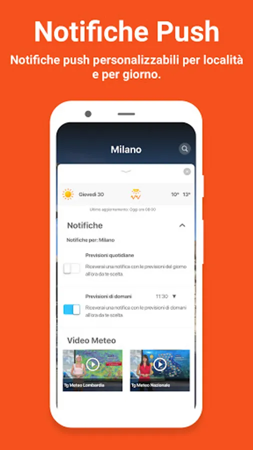 Reliable forecasts require confirmation and updates: with the Meteo.it app you can constantly check for any changes in progress and receive notifications with alerts and insights. Activate push notifications and stay up to date on the weather situation of your favorite locations!