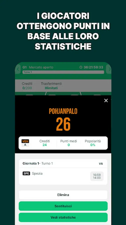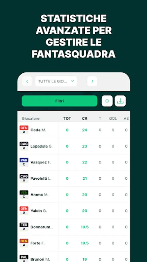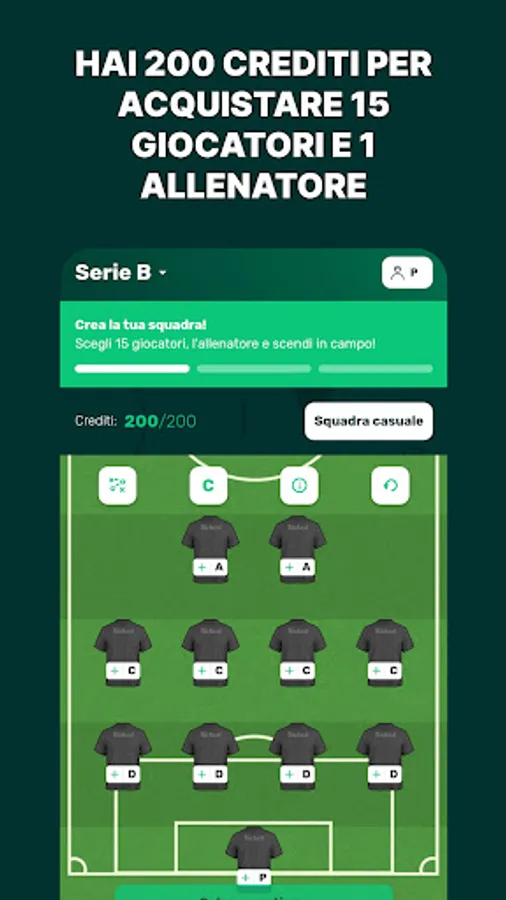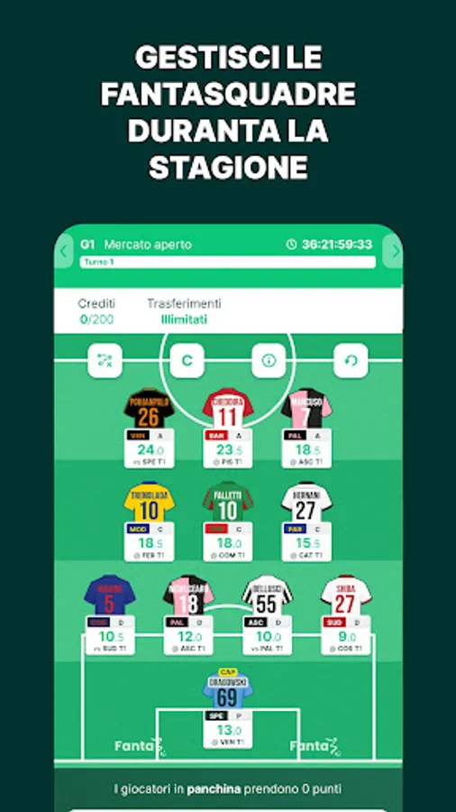 2. Credits: each player and manager is associated with a value expressed in credits, which can increase or decrease during the season depending on actual performance.