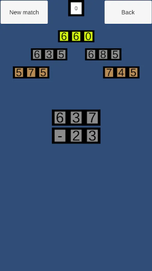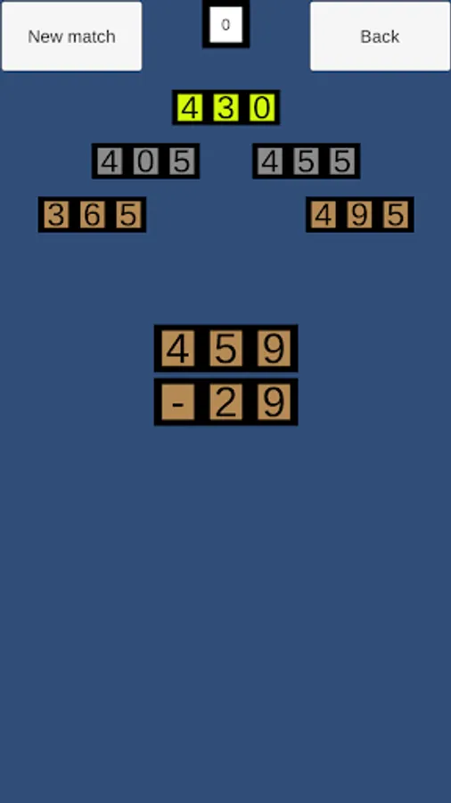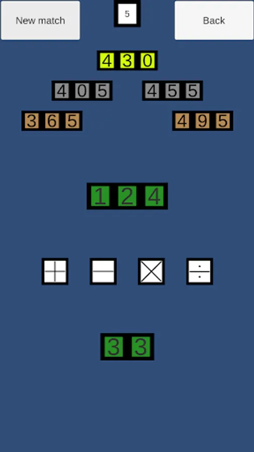 goal of the game reach a 3-digit number with 5 moves that consist of the use of one of 4 operations