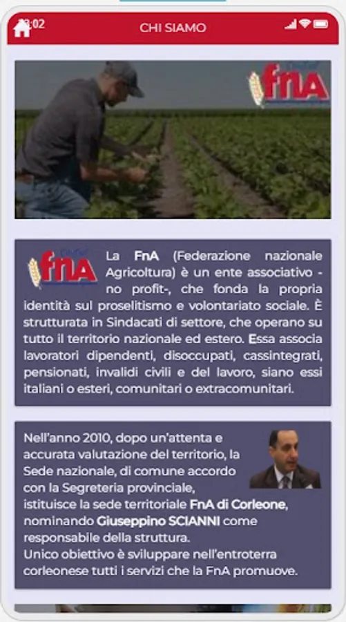 In 2010, after a careful and accurate assessment of the territory, the National Headquarters, in agreement with the Provincial Secretariat, established the FnA territorial office in Corleone, appointing Giuseppino SCIANNI as head of the structure.