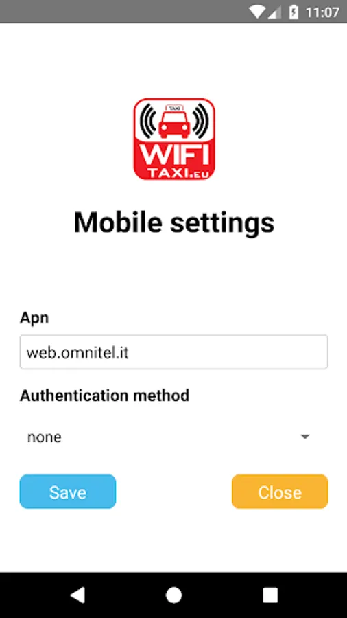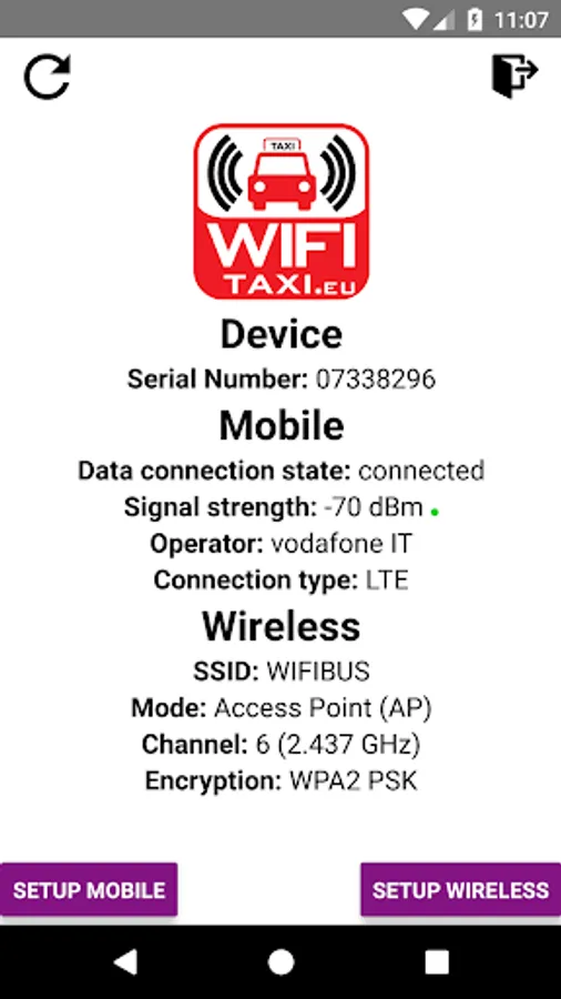 The application manages the eponymous WiFiTaxi 4G Wifi router, designed and approved for installation on Taxi and Limousine Service. Through the application it is possible to modify some parameters such as the name of the WiFi network (eg. WIFI TAXI ROME 100) or the SIM APN used, in order to smoothly change the mobile operator without the need for a technician. The WIFiTaxi router is ideal to enable its customers to connect to high speed internet during the race but also for the use of the driver itself.