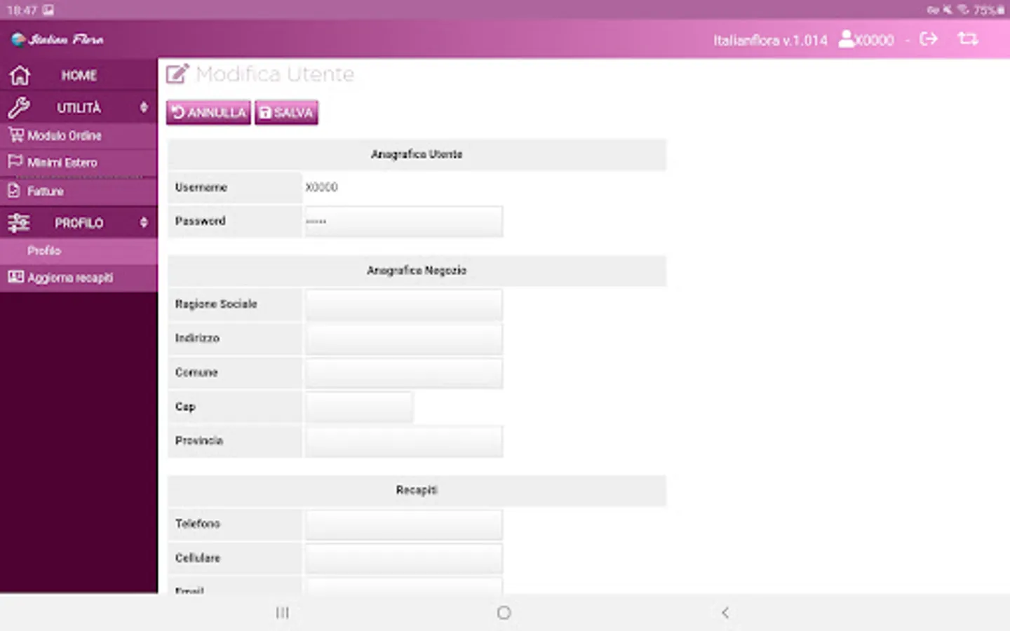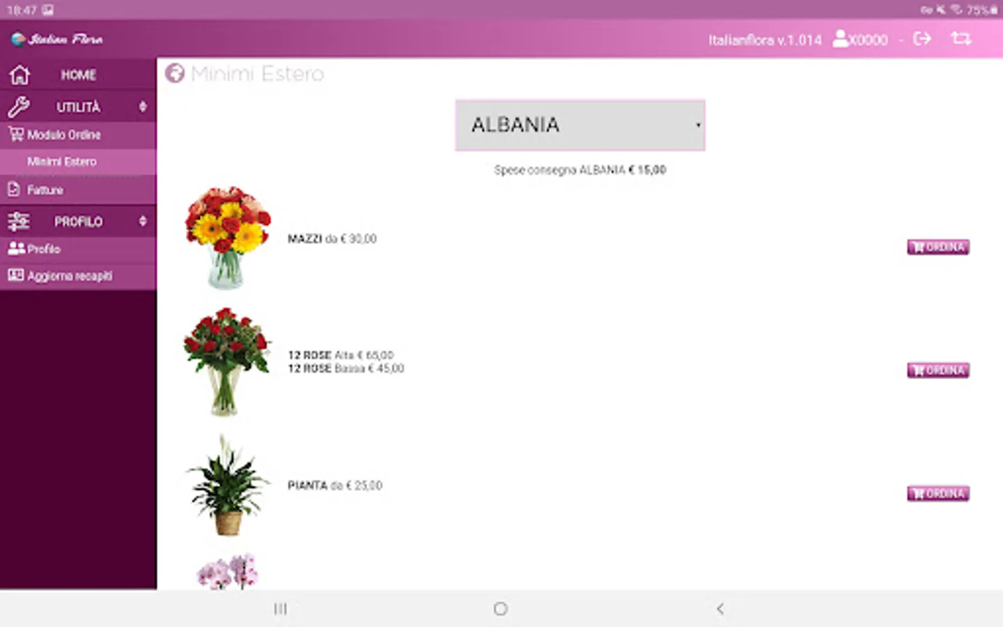 The app allows direct access to the area dedicated to ItalianFlora flowers