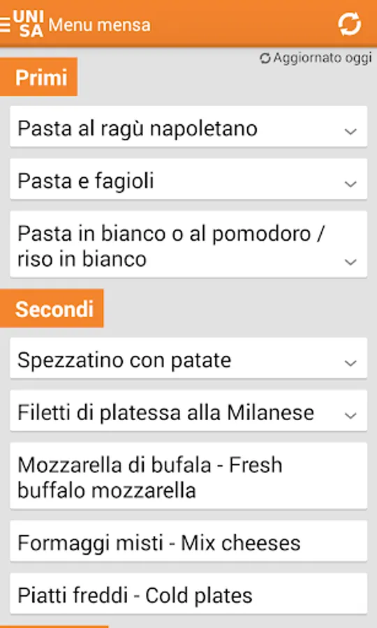 ★ Quick access to the menu of the table (via the website http://ammensa-unisa.appspot.com/) (after the first appearance of the day is saved and can be accessed online)