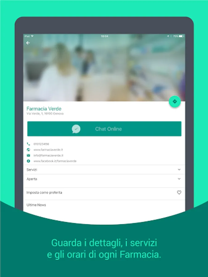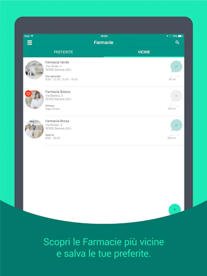 Know where the nearest pharmacy is and, for those enabled, know the opening hours, communicate via Chat directly with your trusted pharmacist in real time but not only ...