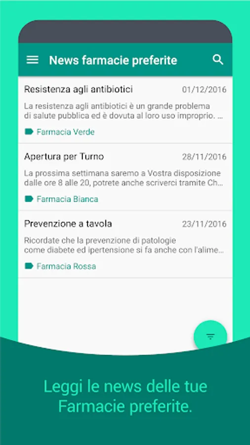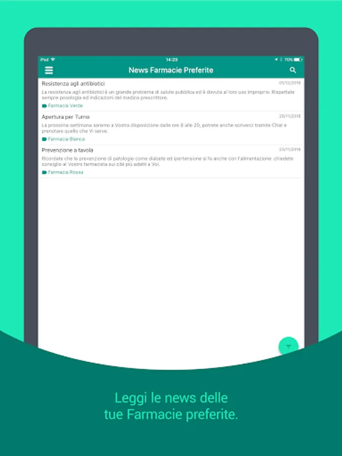 … Ask for availability of drugs and book their collection, receive updates on pharmacy activities, urgent news, information on periodic checks and seasonal vaccinations and much more!