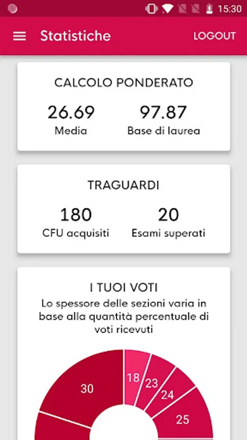 After logging in through university credentials, the app helps the student by showing relevant information obtained directly from the University's servers.
