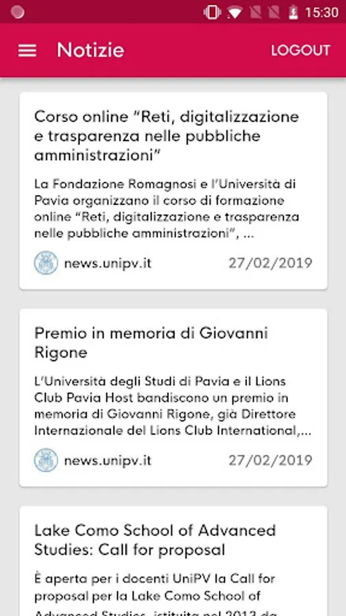 The app is intended as a support (but not a substitute) of the ESSE3 online area of Pavia University.