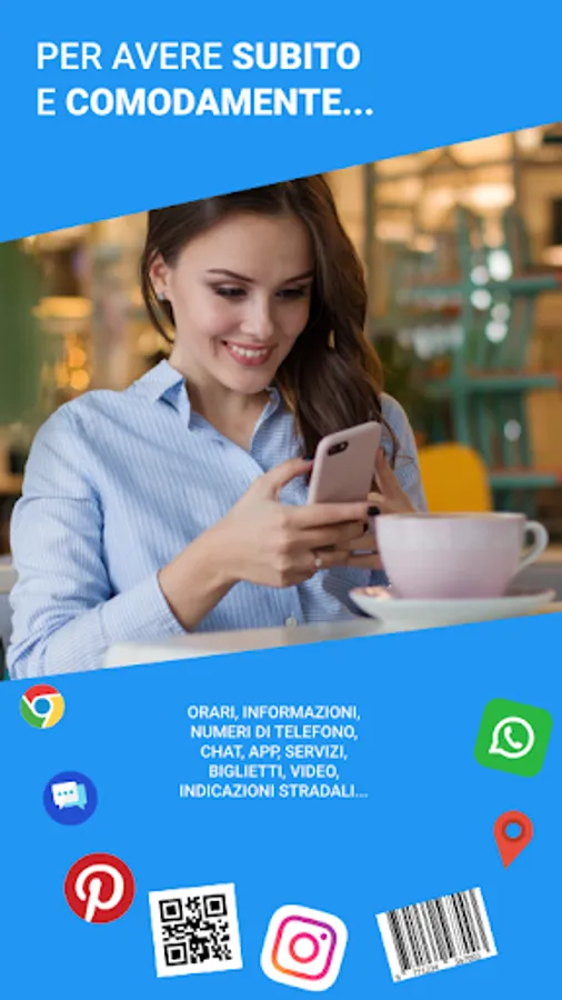 Access to contents and informations about products and services, games and tourist infos; access and link the world aroun you to your smartphone ant to the apps you love more.