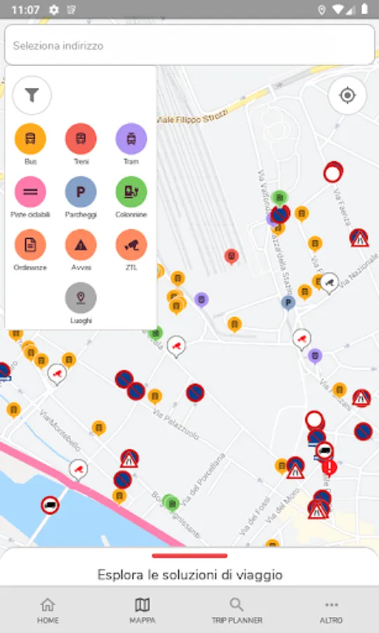 The IF App allows you to receive customized push notifications based on user preferences and consult up-to-date information on urgent road works, accidents, transit times at Local Public Transport stops (bus, tram, etc.), street cleaning , Cycle paths, charging stations, availability of parking spaces in the structure, construction sites and everything related to mobility in the Florentine area. With IF the user can plan his travels for work or study purposes and obtain the information that helps him choose the most suitable solution for him. With IF you can send reports on the services used to help the Administration to improve the mobility of the Florentine area.