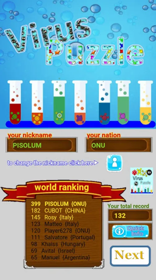 Yes, record level: for this game there is a worldwide ranking, you can see it at the beginning of the game, so the more you accumulate scores, the more you can place among the first in the world in the Virus Puzzle.