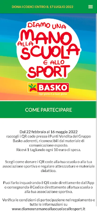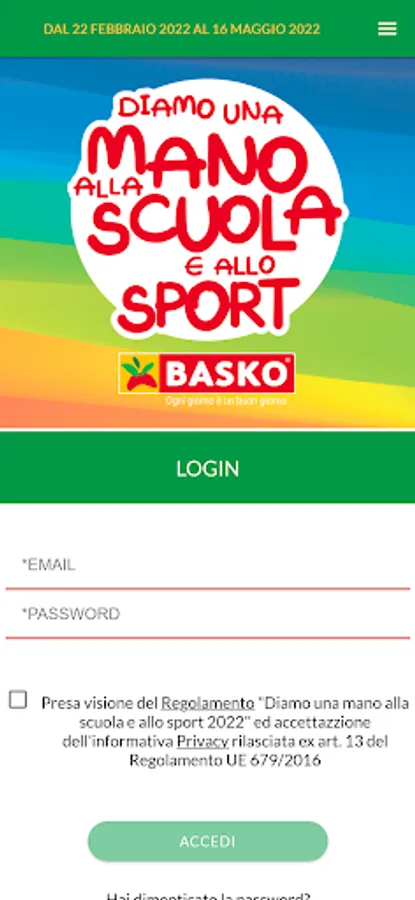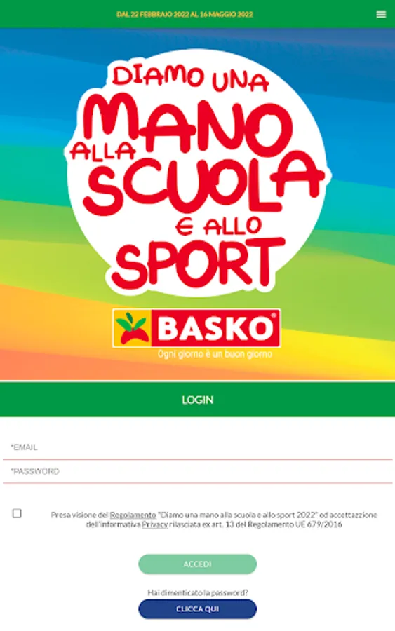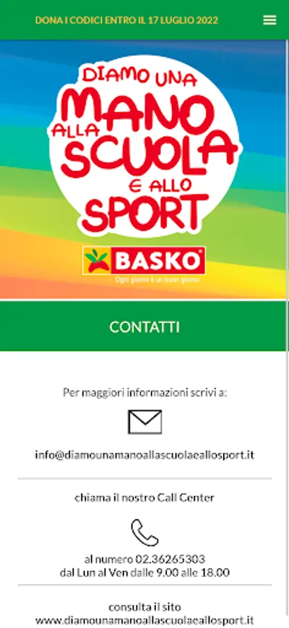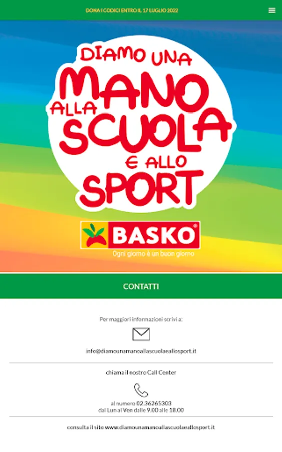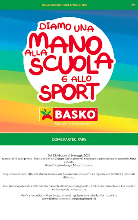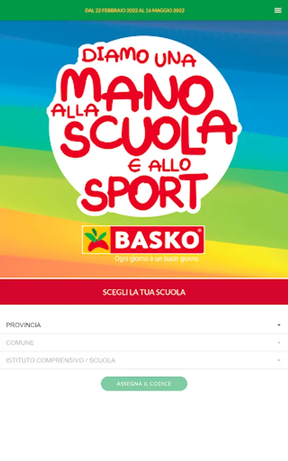 The initiative GIVES A HAND TO SCHOOL AND SPORT is promoted by BASKO and is aimed at state and private schools for children, comprehensive schools and state and private schools of first and second grade and amateur sports clubs in Italy .