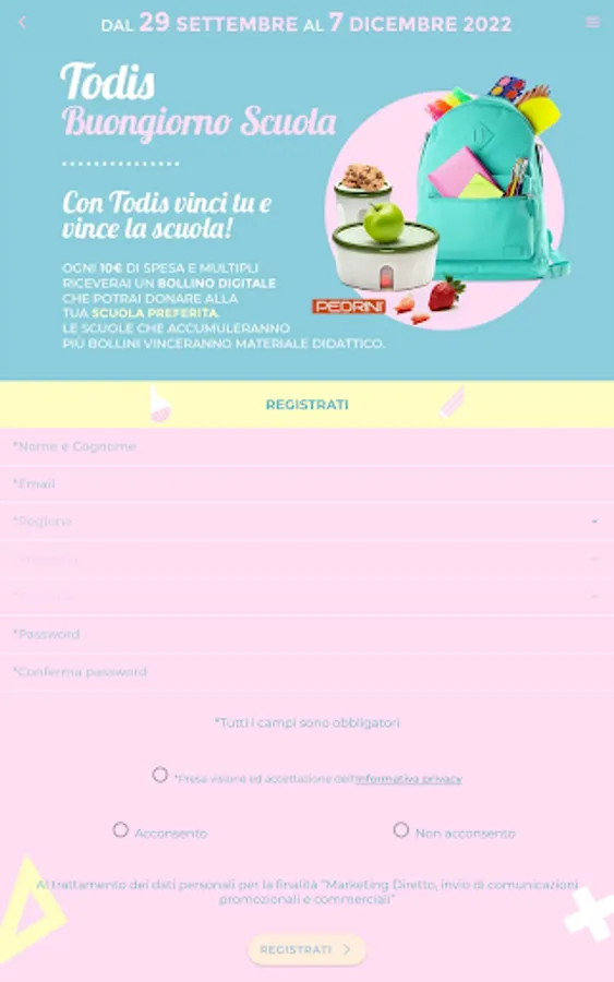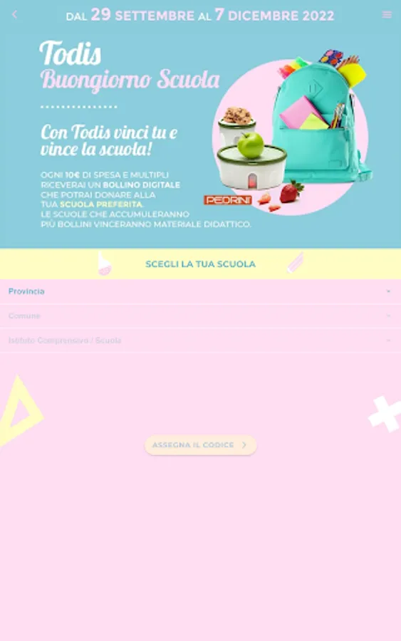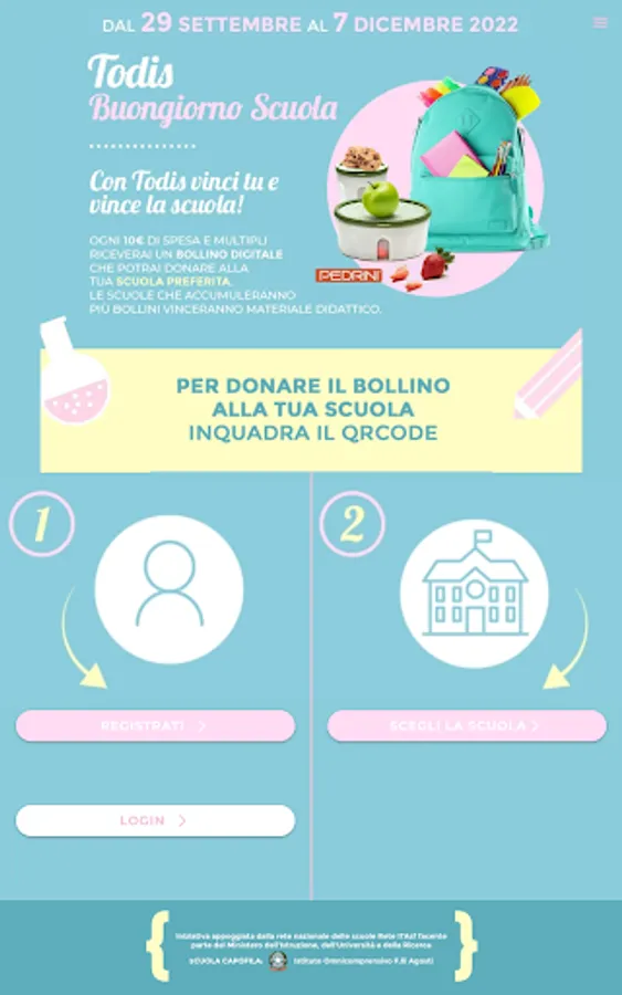 TODIS GOOD MORNING SCHOOL: The initiative promoted by Todis in favor of Comprehensive Institutes and State and Equivalent 1st and 2nd grade schools and kindergartens.