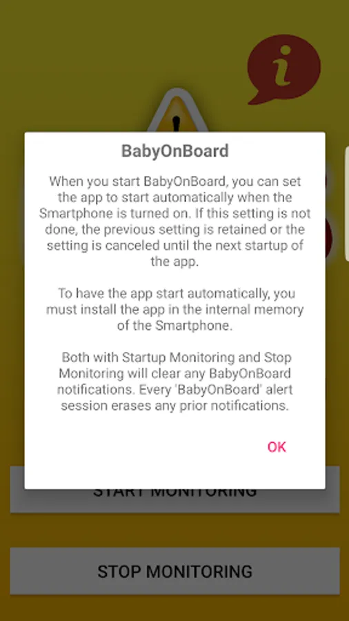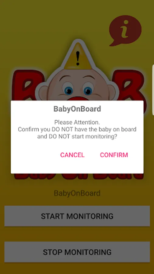No sensor, no additional device, our app understands when you get out of the car and after a few steps asks if the baby is with you.