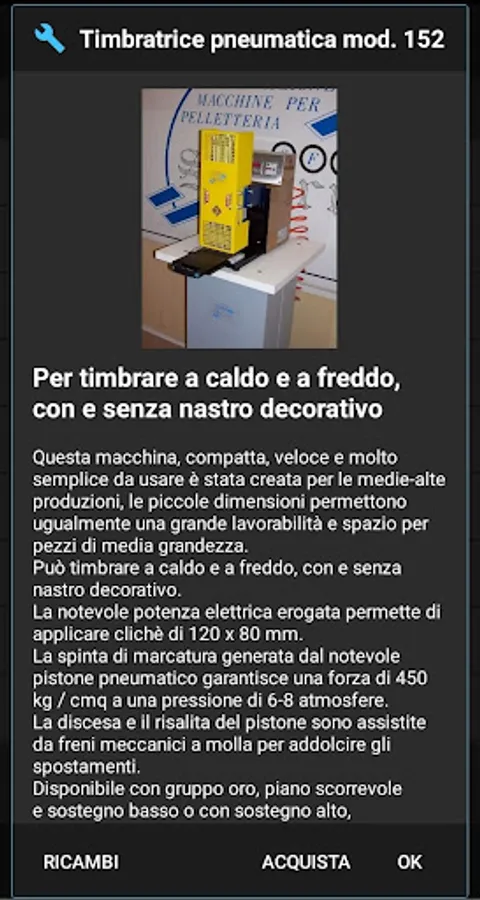 Orders for machines for leather goods, spare parts, request for assistance and maintenance. NFC technology.