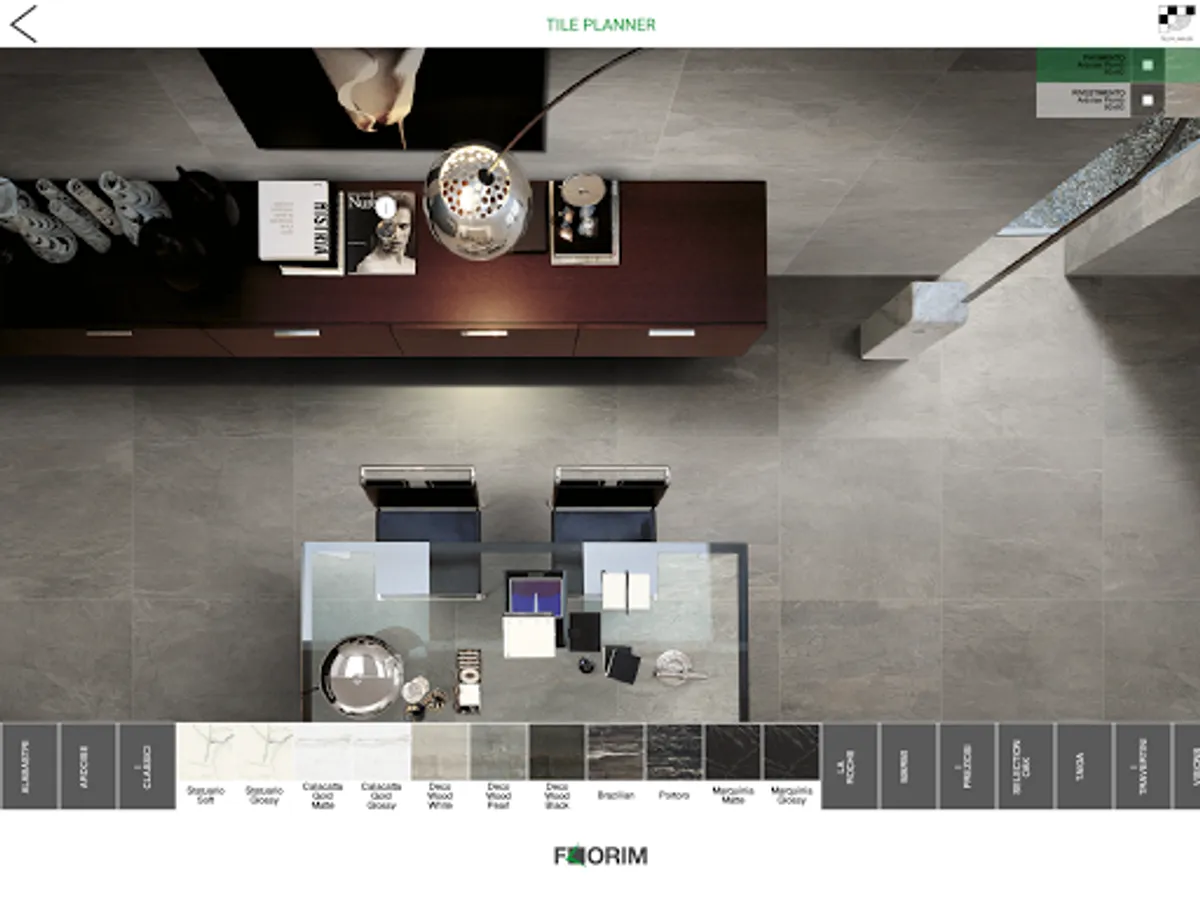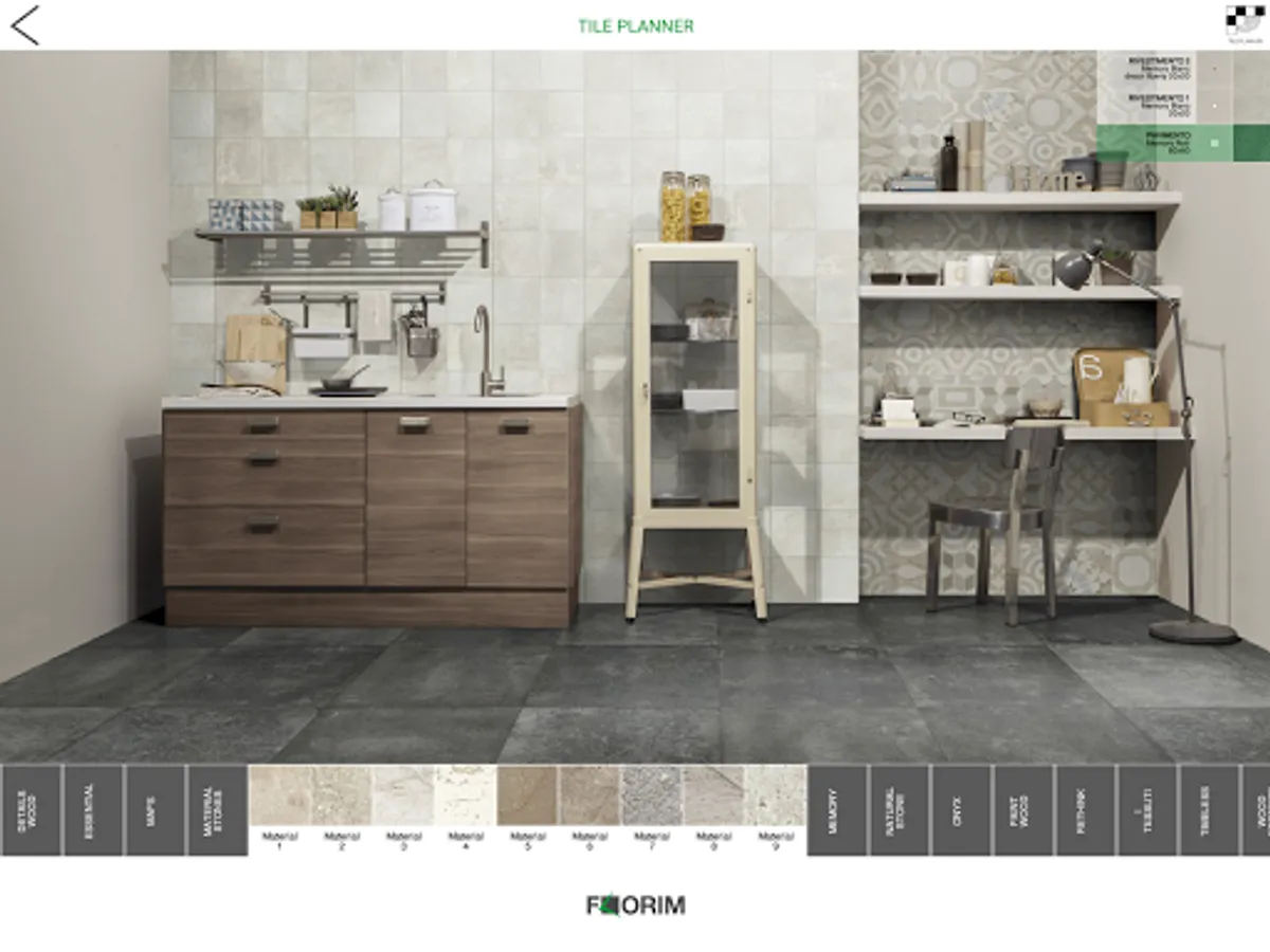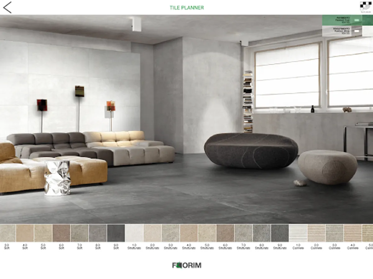 Florim has designed an application in a few simple steps to help you configure the space, matching porcelain tile floors and walls in different settings and with many proposals of colors, styles and sizes!