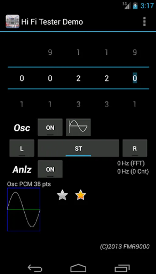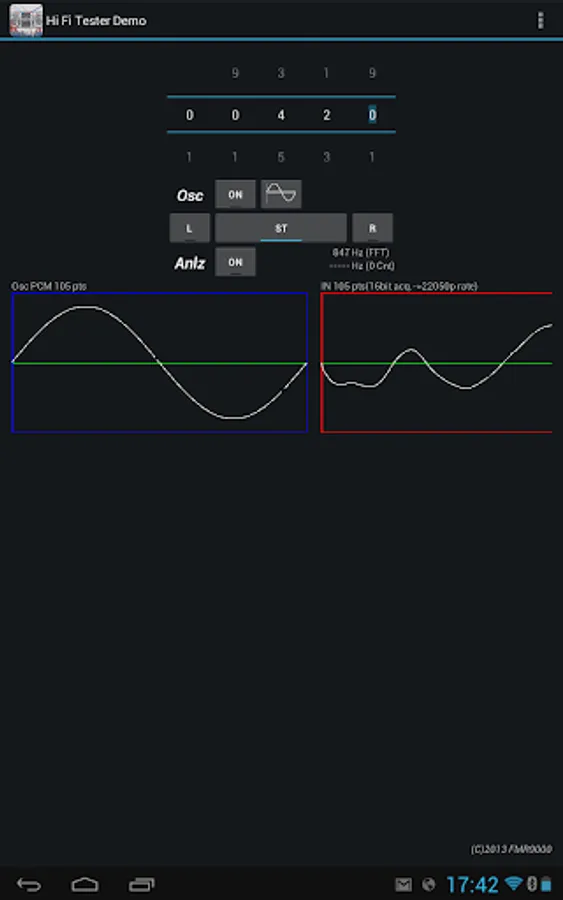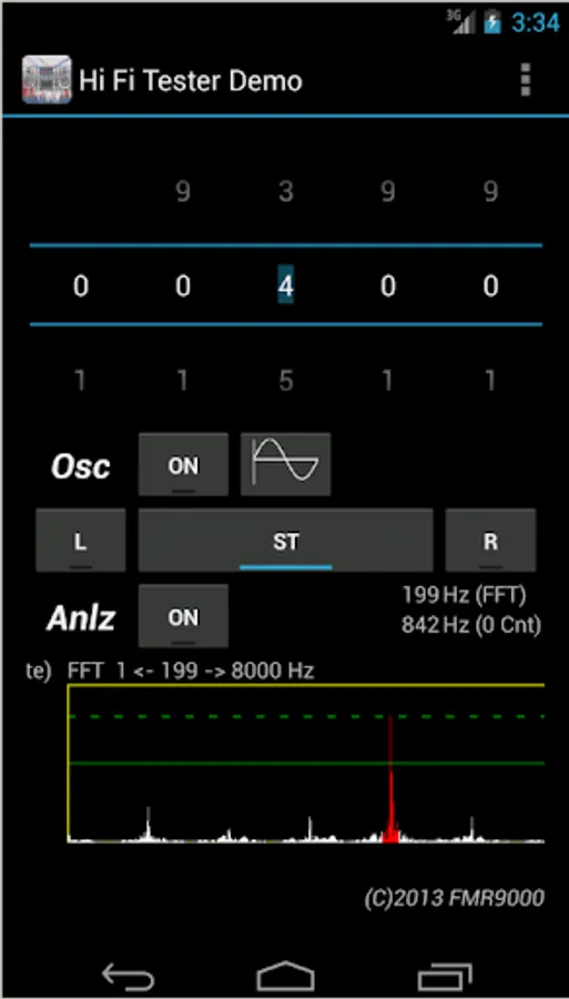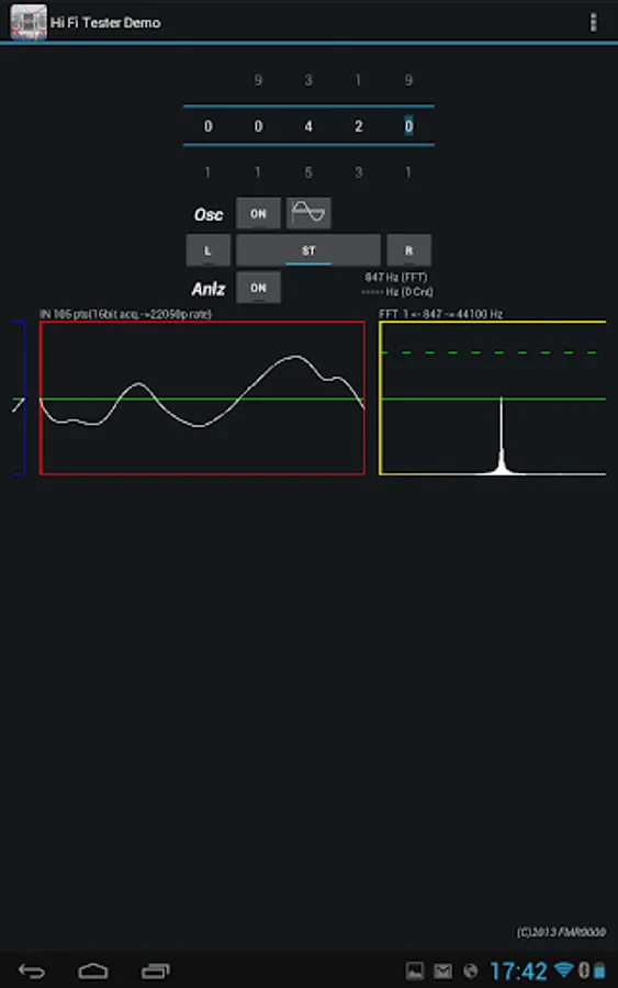 The app analyzes, capturing the sound with the microphone, showing: