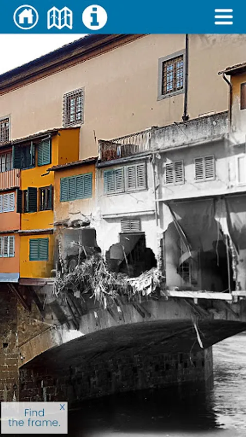 Select the point on the map or in the Gallery to view photos and touches the screen from the bottom to switch from the present to 1966.