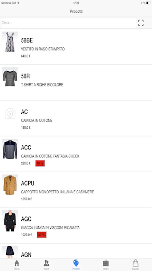 - Access to the product catalog where, for each product, the current stock, the discount and the price are reported.