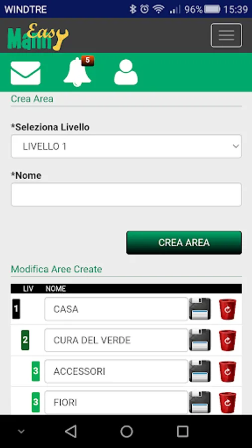 The change of an upper level influences the levels below, so it's important to plan the areas section before creating them in EasyManny.