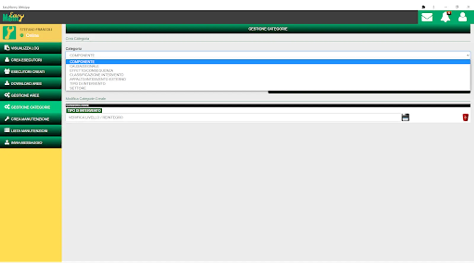 Categories represent all the extra information which the user can join to his maintenance intervention to characterize it better.