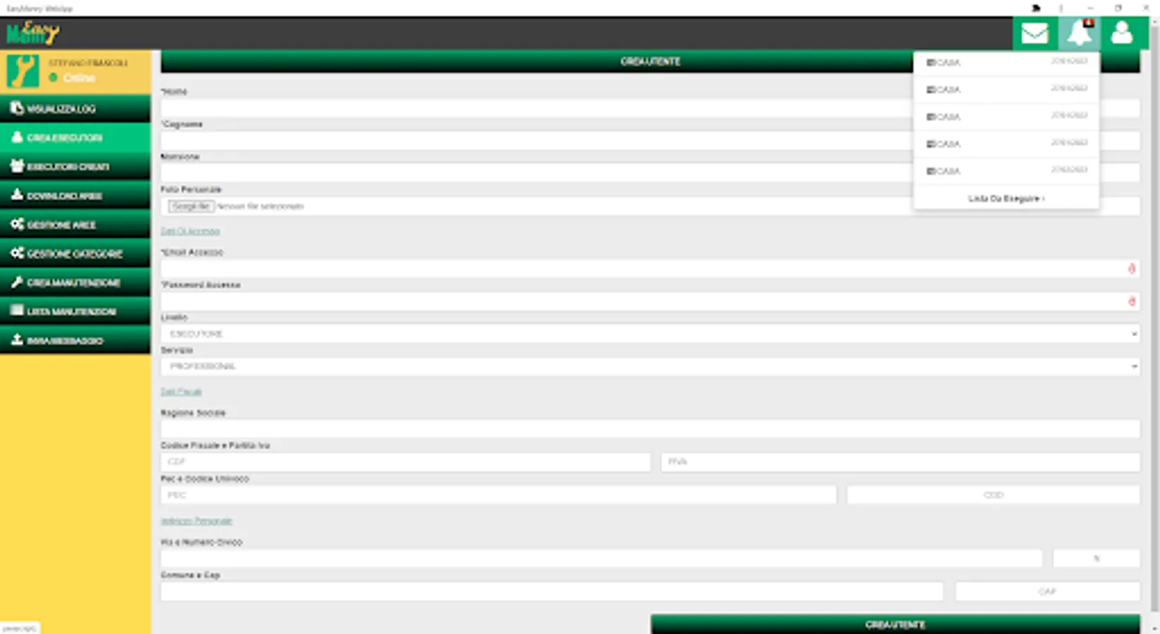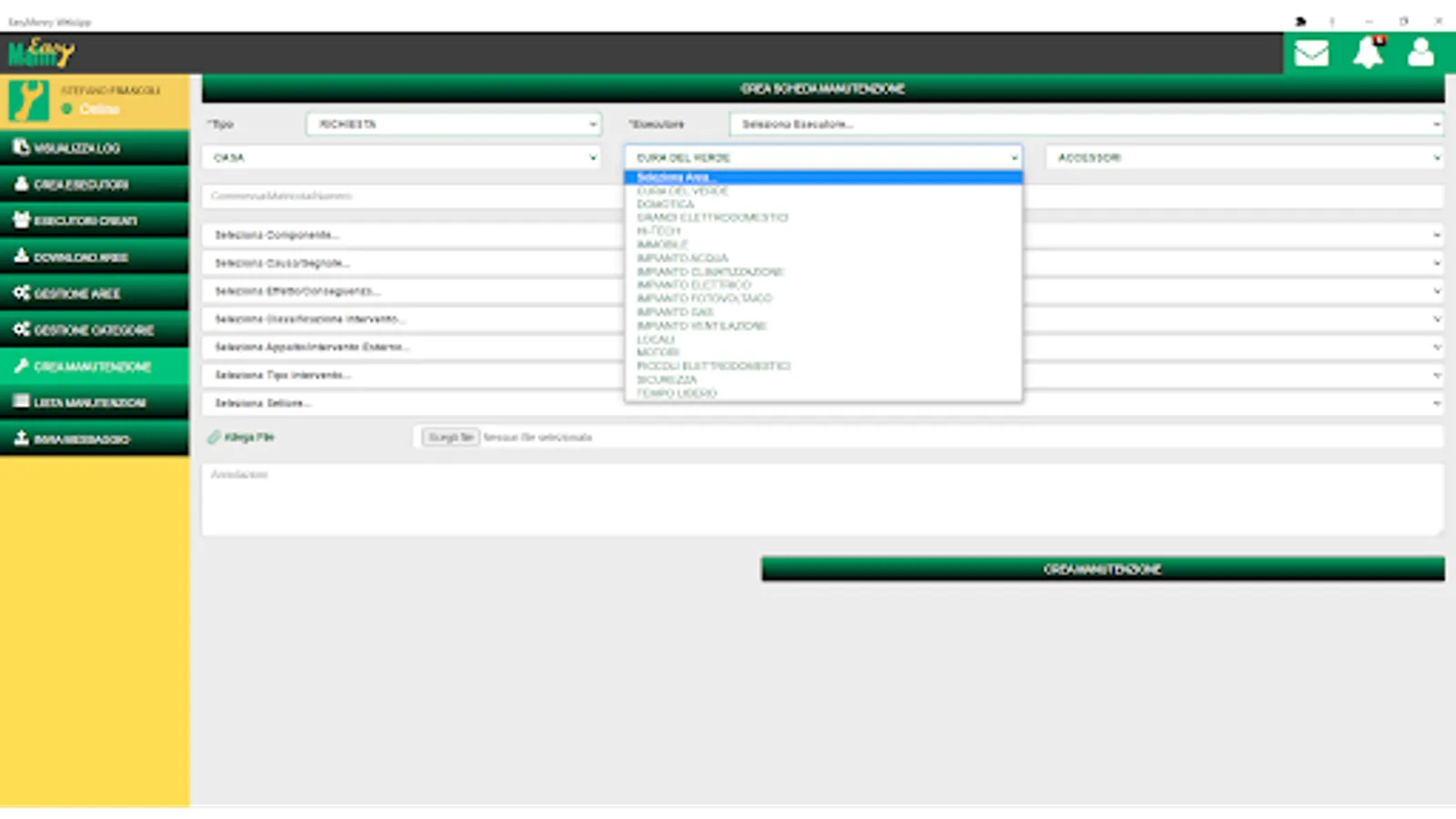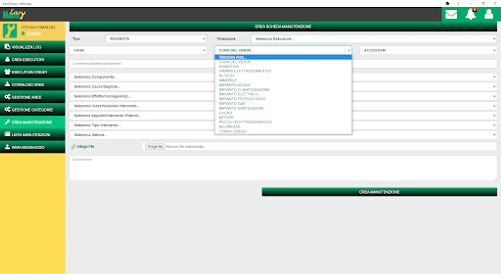 It gives you the home version and also the extraordinary maintenance management, the attachments insertion, the messages section, the endless creation of performers, the download of the interventions done.
