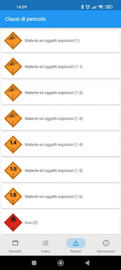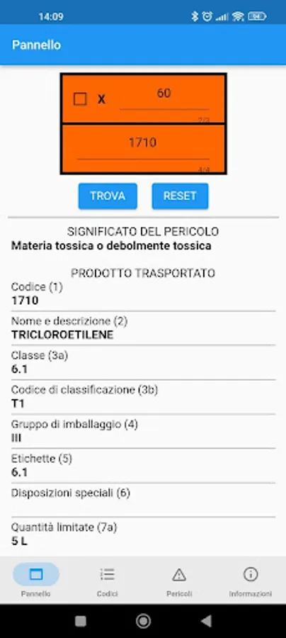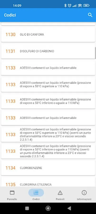 If you do not have both numerical codes of the panel available, or you simply want to consult the list of all the materials cataloged by the UNECE, you can use the page with the complete list and possibly filter by material code, name (even partial) or danger.