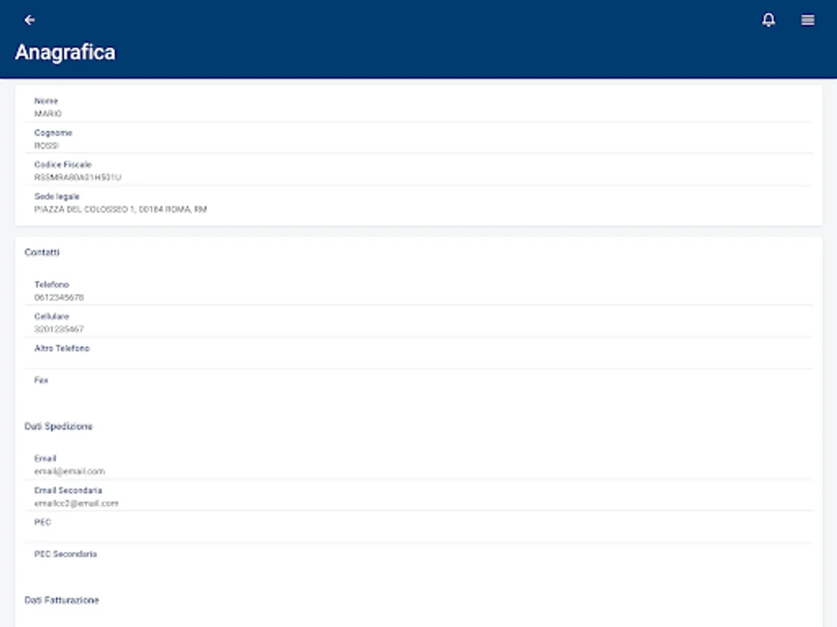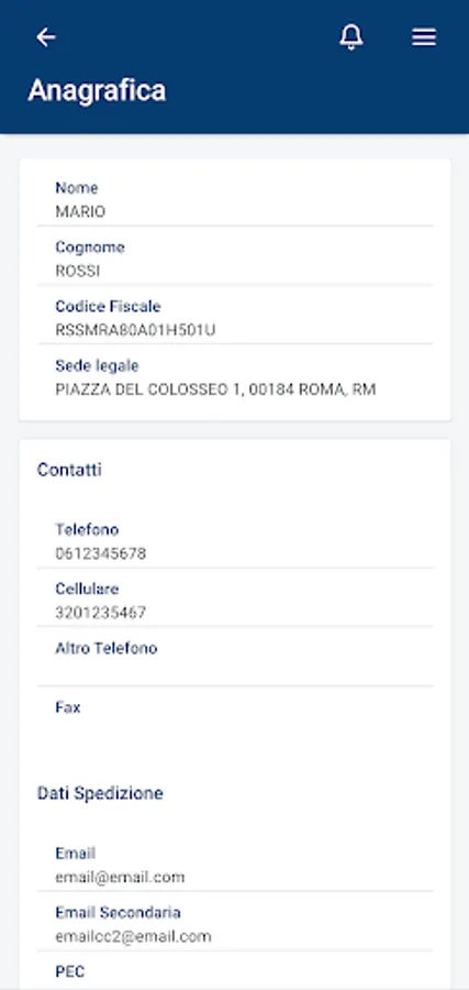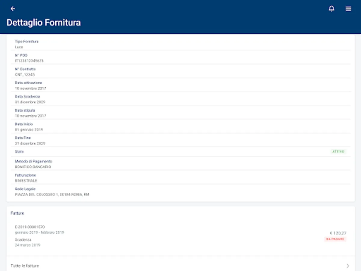 With a simple click you can access your personal data and contractual data.