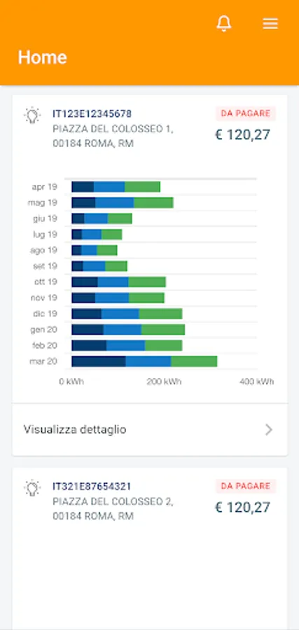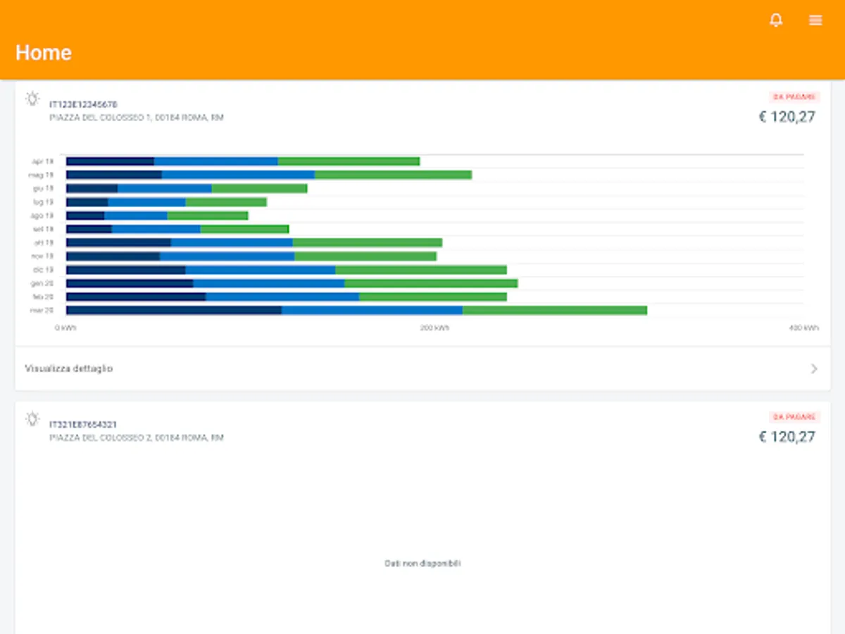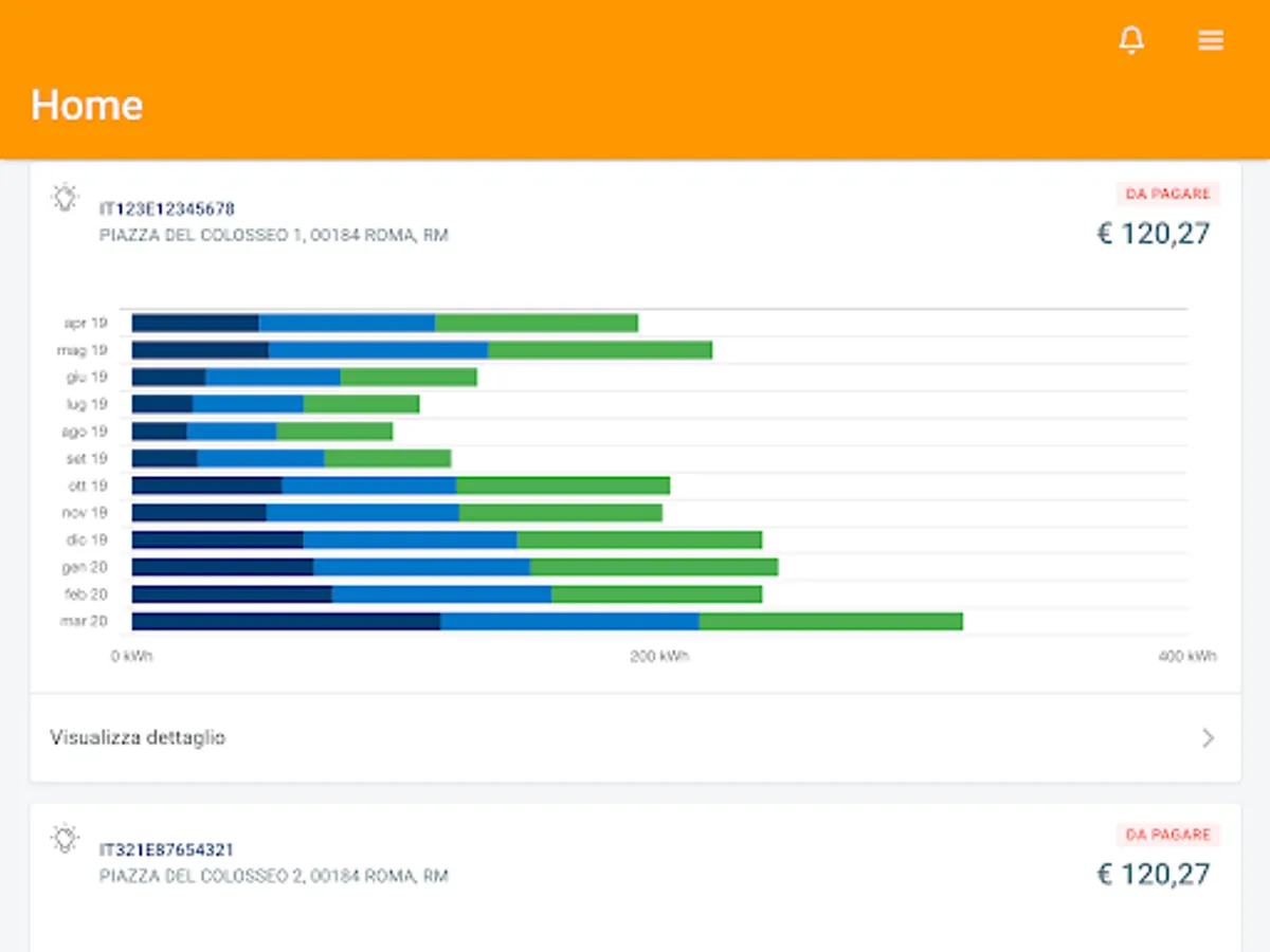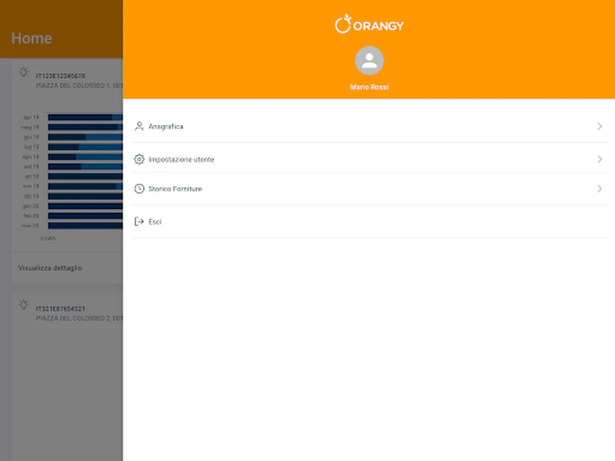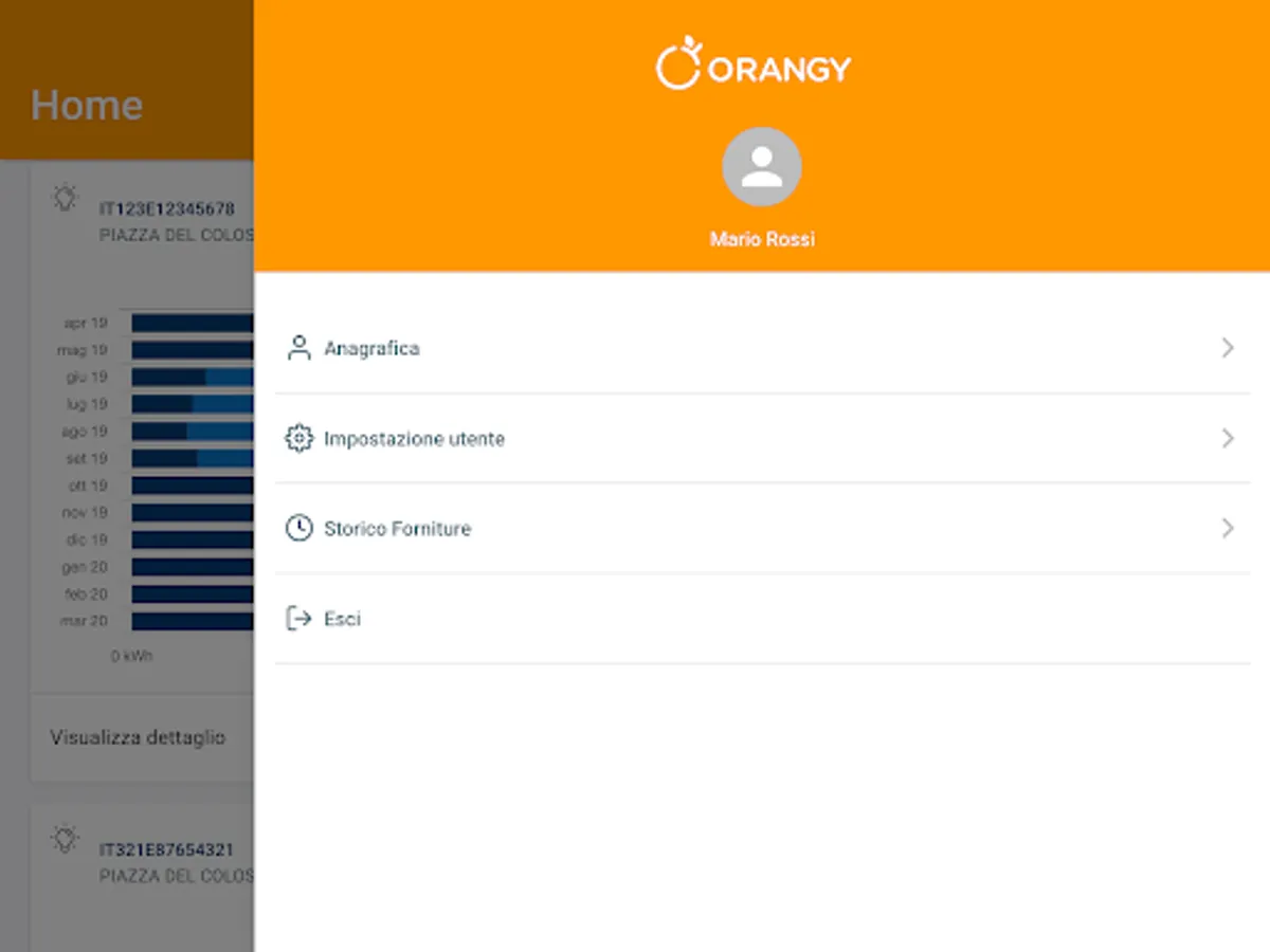 Orangy provides customers with all the services for managing their electricity and gas supplies, such as viewing their bills with the related consumption.