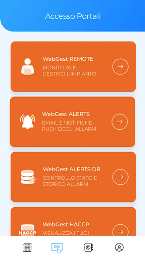 You will have the ability to view and manage: systems, alarms, HACCP, active services, news and updates.