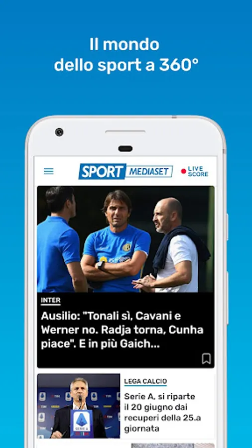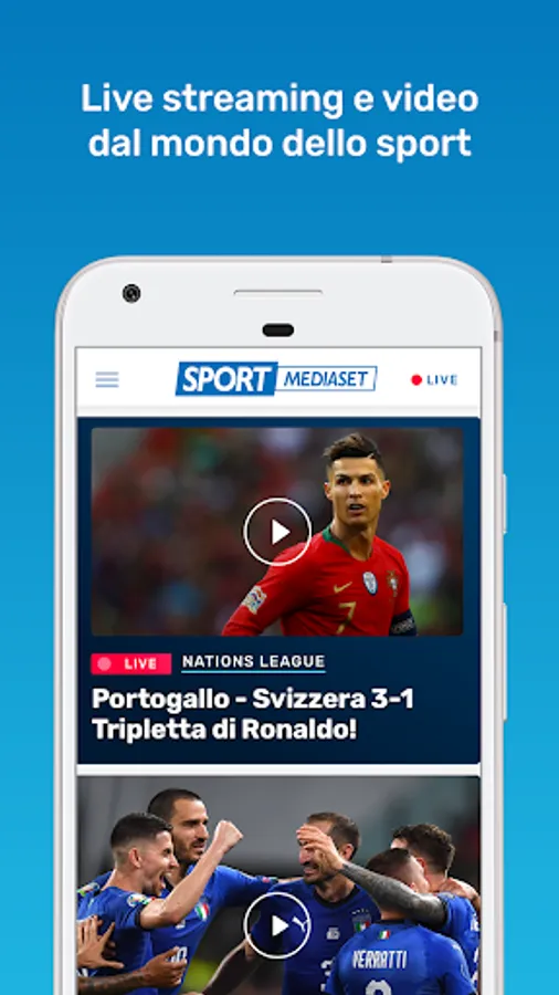 With Sportmediaset all the sport at 360 degrees on your smartphone!