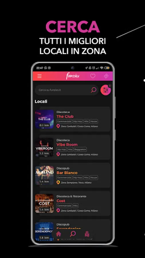 Funzies is the application that allows you to quickly and easily find all the best evenings, discos and disco pubs in and around you.