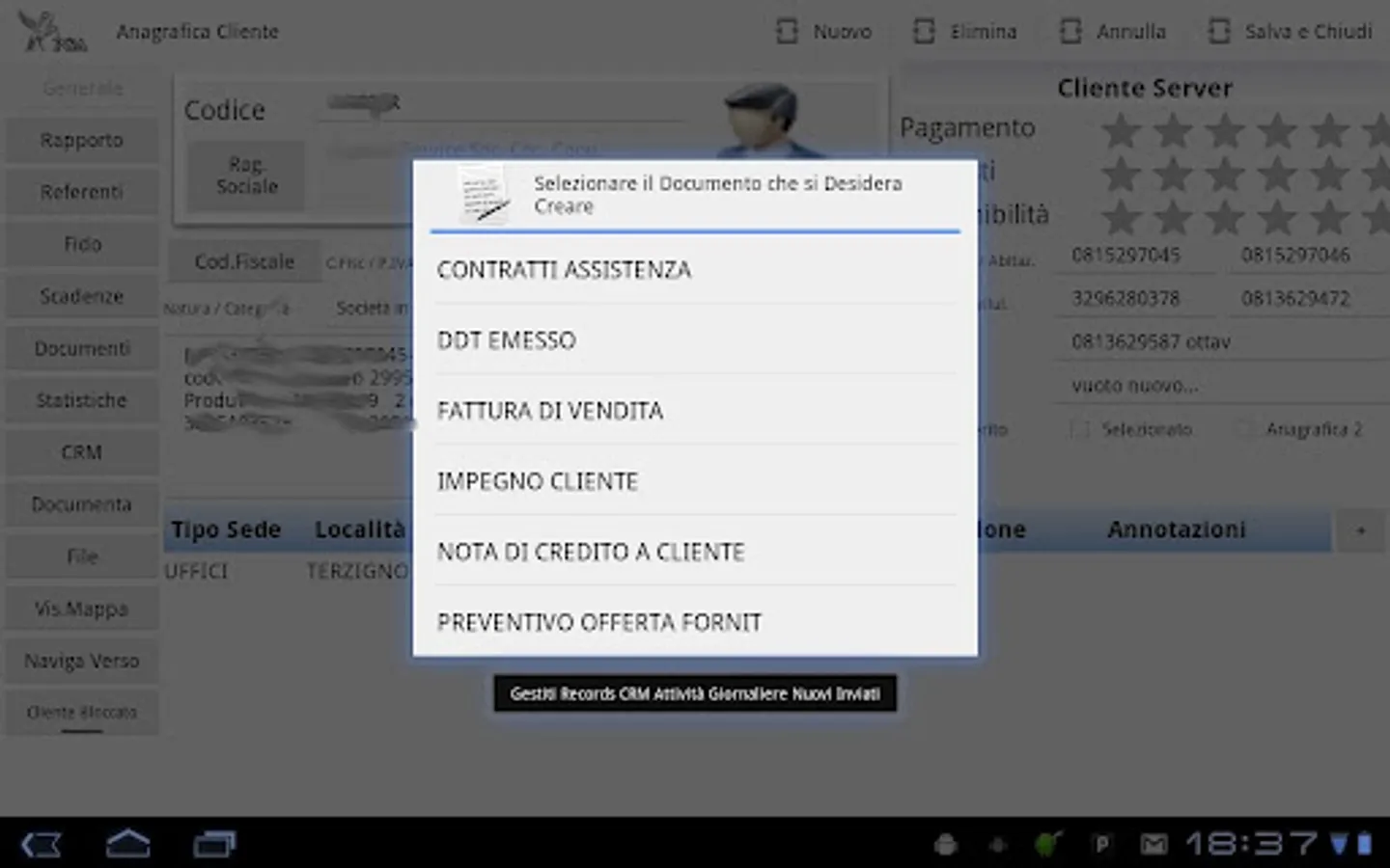Thanks to the CRM and the Visits round, the company will be able to set the agent's round of visits, checking the customer's responses in real time (e.g. 'Do not order', 'Contact again' ...), on the terminal side the agent will have below I check the historical customers (visits), the daily activities to be carried out and much more ...