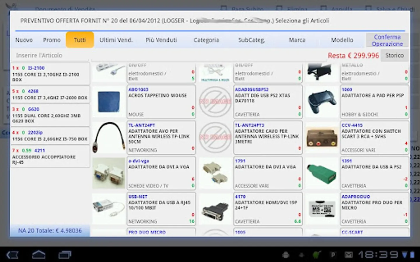 We remind you that for the complete synchronization of data on the windows management system we recommend the use of Pegaso Gest which will also allow the modification of basic tables. The Android Terminal works off line to synchronize at will with the windows platform.