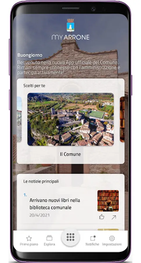 The MyArrone application of the Municipality of Arrone is the tool, structured for mobile technology, capable of ensuring effective, immediate and constant communication between the Administration and Citizens.